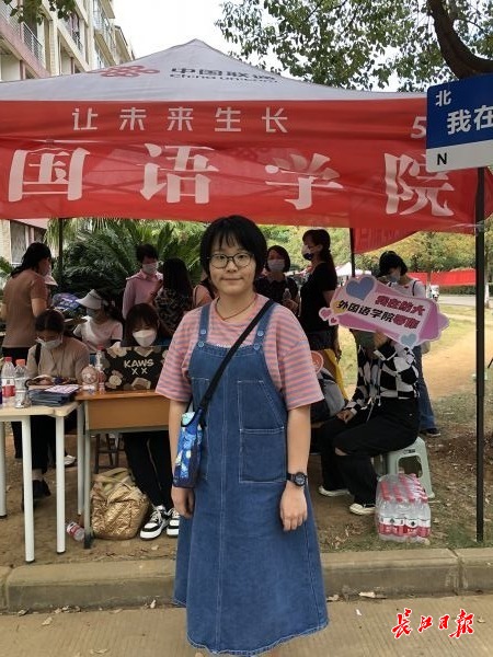 来自河南新乡的武汉纺织大学外国语大一新生周艳玲。 记者胡义华 摄