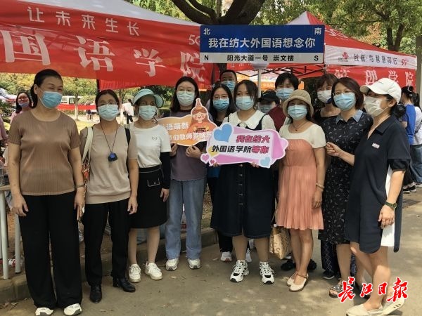 武汉纺织大学国产乱婬AV片免费部分老师学生在迎新处。 记者胡义华 摄