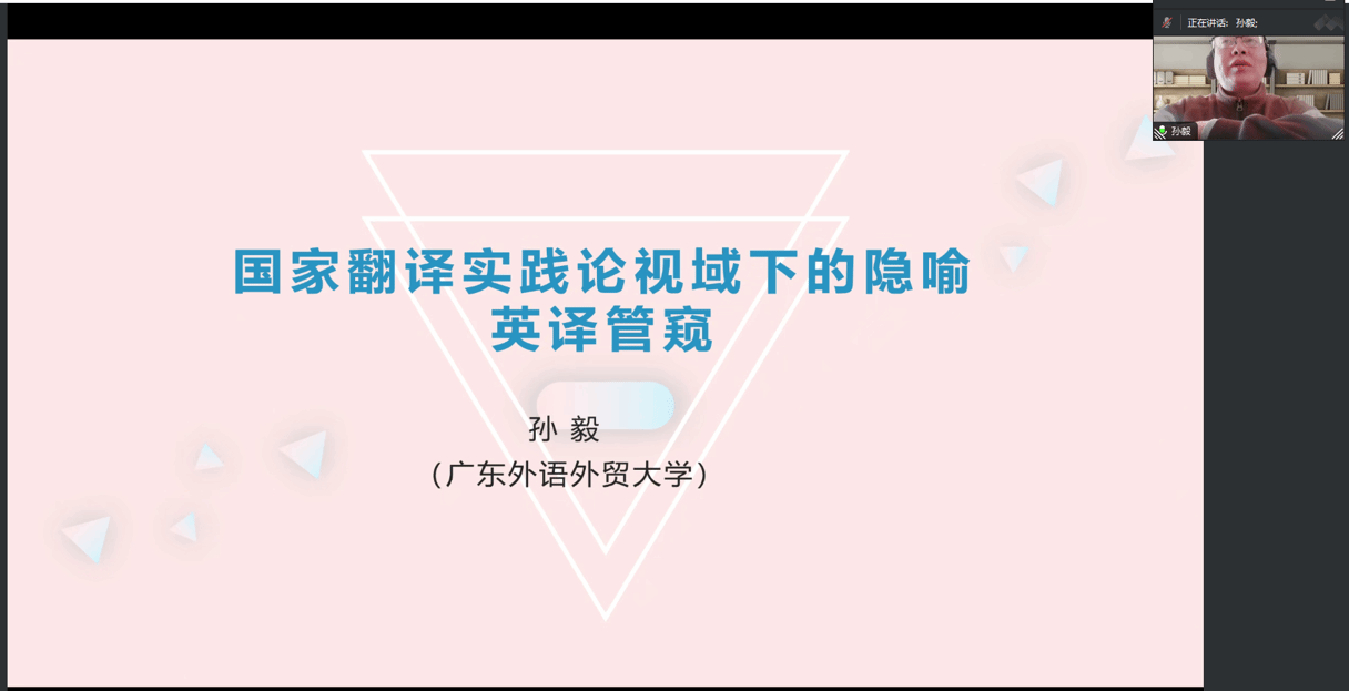 10月24日,国家社科基金项目评审专家、广东外语外贸大学云山杰出学者、博士生导师、博士后合作导师孙毅教授应邀为国产乱婬AV片免费师生做了一场精彩的线上学术讲座《国家翻译实践论视域下的隐喻外译研究》。国产乱婬AV片免费教师和MTI学生参加讲座,讲座由副院长刘方荣主持。