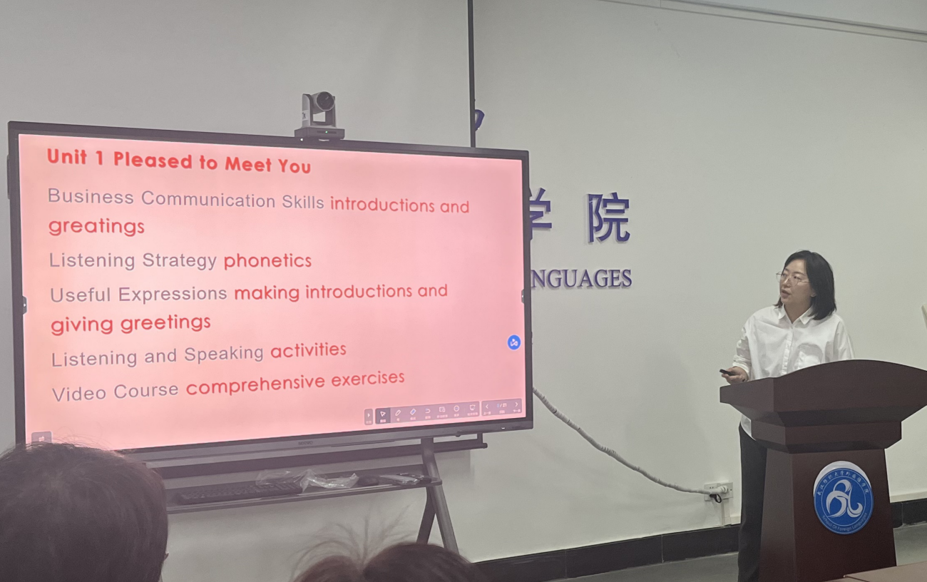 10月18日下午,商务英语教研室与英语专业教研室联合开展了十月教学观摩活动,商务英语教研室关薇老师分享了《商务英语视听说I》的课程设计,吴凤竹老师分享了《商务英语视听说III》的课程设计、在线课程建设历程以及课程建设的成效,之后,两位老师就各自的课程进行了教学展示。