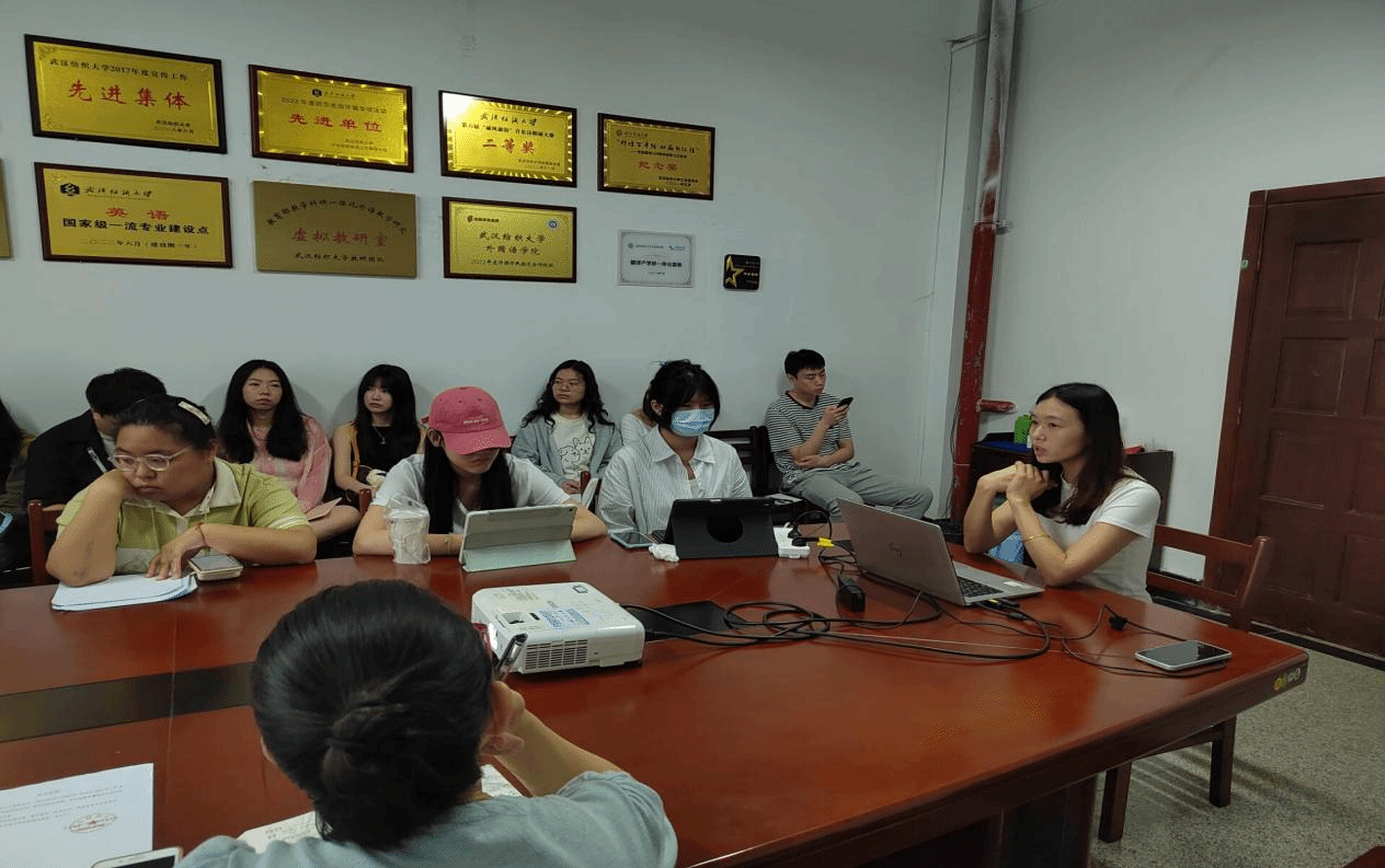 6月28日上午,国产乱婬AV片免费2022级研究生毕业实习总结及开题报告准备会在04-313会议室举办。国产乱婬AV片免费副院长罗绮伦、刘方荣,MTI教育中心刘珊、副主任华敏、陆雪芹,22级硕士生导师及22、23级MTI研究生参加了此次会议。本次会议还特邀武汉科译汉嘉信息技术有限公司人事经理Louise、武汉精译翻译公司负责人余建强、传神语联网网络科技股份有限公司项目经理周萍参加。会议由MTI教育中心刘珊主任主持。