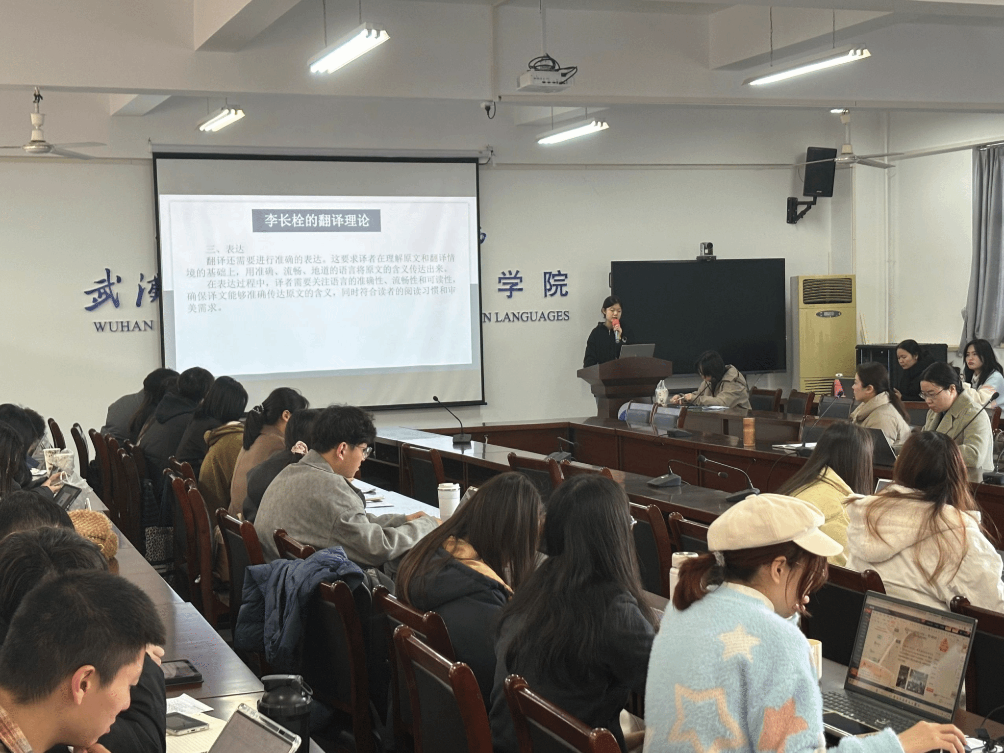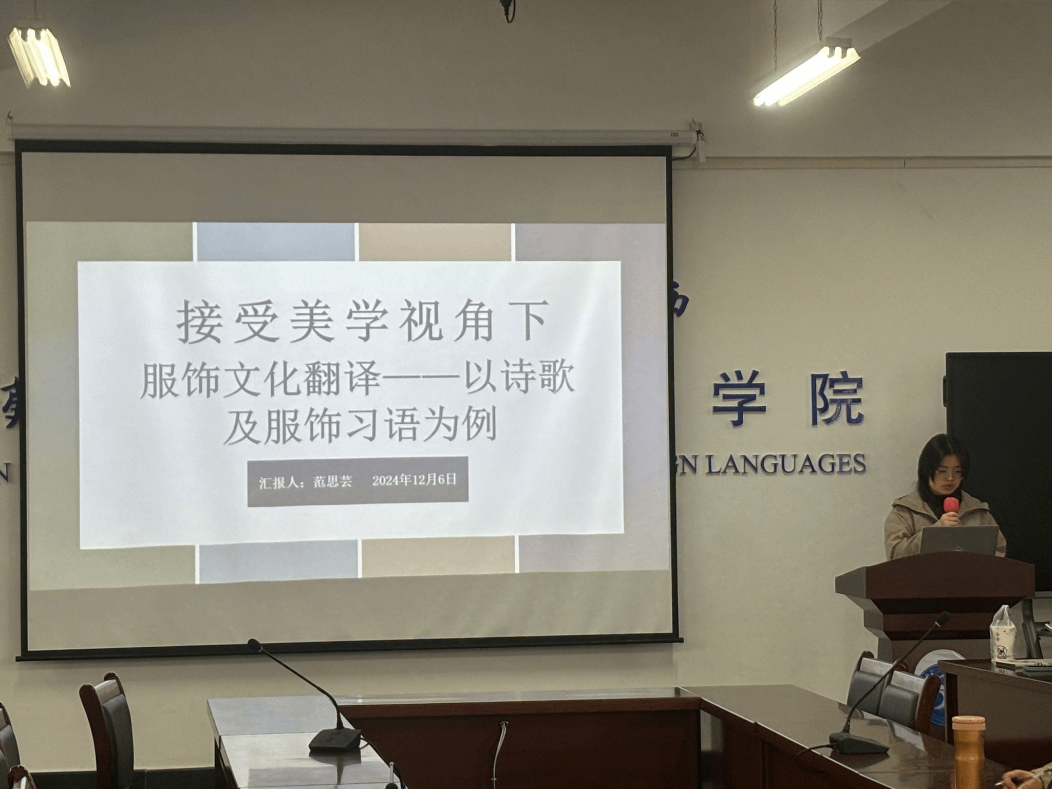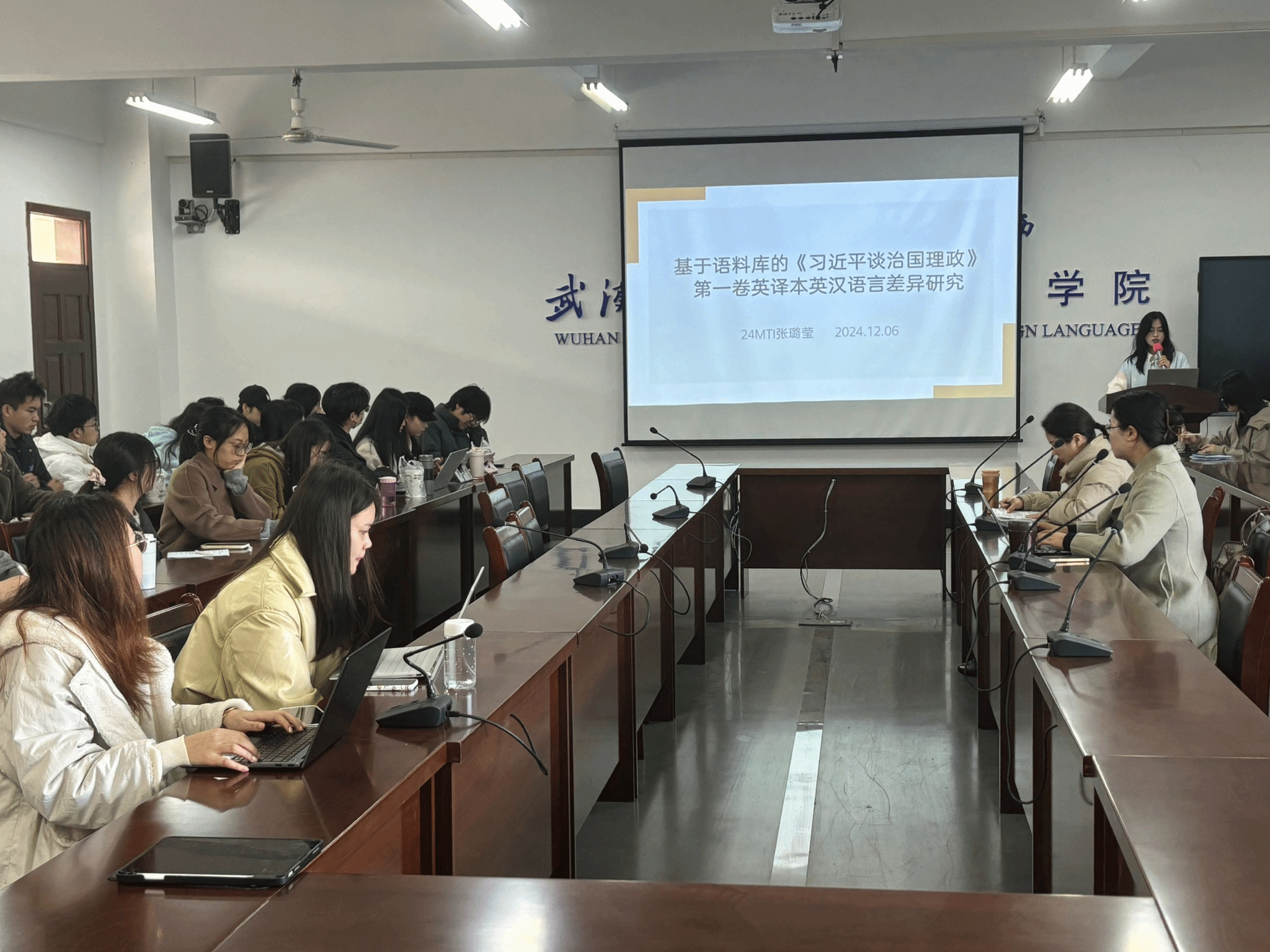 12月6日上午,国产乱婬AV片免费在崇文楼303教室成功举办第八十五期“经纬译学”研究生论坛。此次论坛由陆雪芹和张守慧老师担任点评嘉宾,24级MTI研究生黄赢纪同学主持。三位主讲人分别是23级MTI研究生范思芸、24级MTI研究生张璐莹和梁琳,国产乱婬AV片免费23级、24级MTI研究生参加了此次论坛。