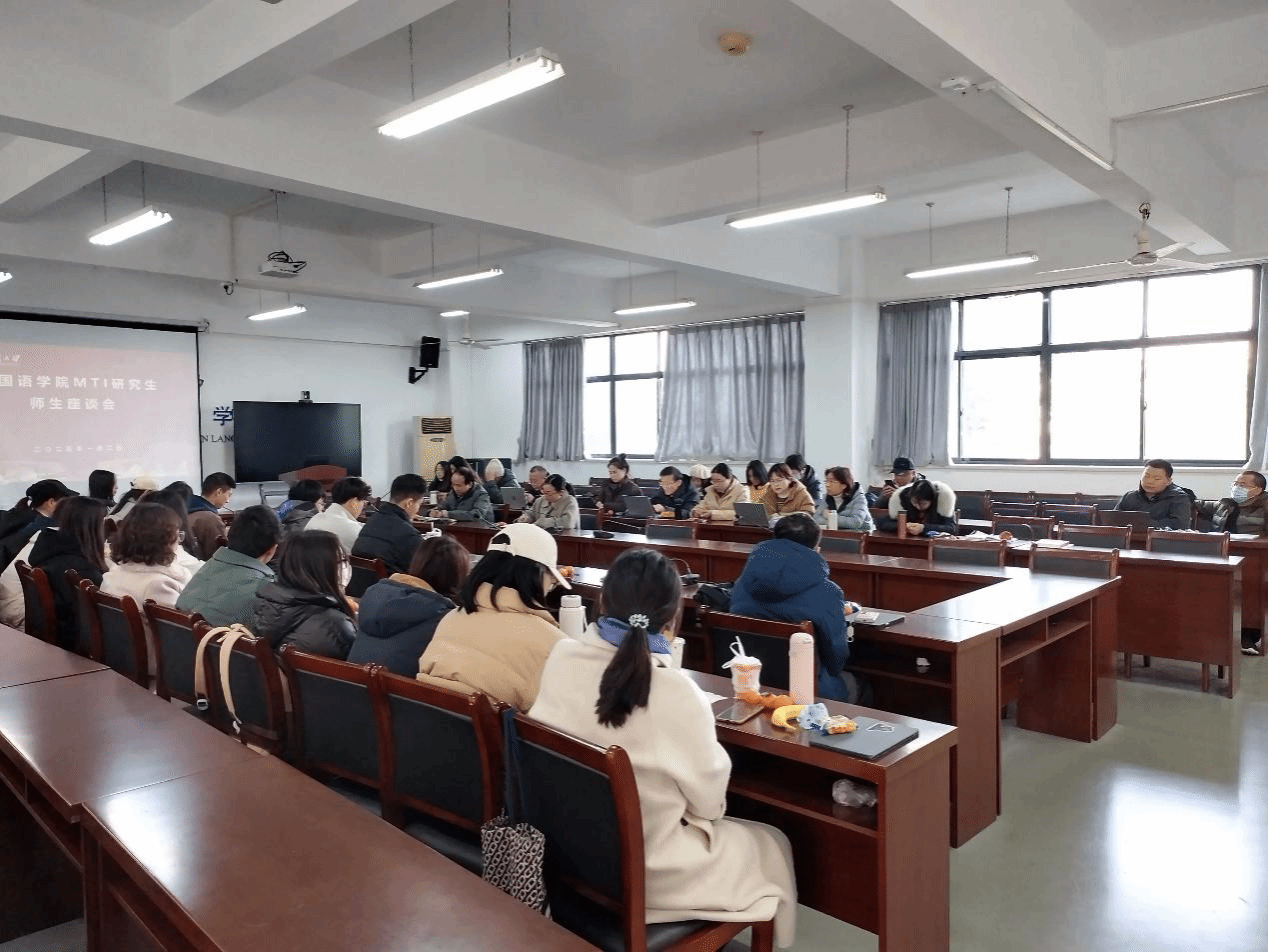 1月2日上午,MTI教育中心举办了师生座谈会。国产乱婬AV片免费副院长刘方荣、副院长罗绮伦、MTI教育中心主任刘珊、副主任陆雪芹、全体研究生导师、任课老师以及2024级全体研究生参加了座谈。
