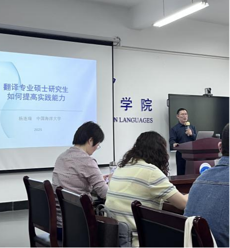 4月11日下午,国产乱婬AV片免费在崇文楼303教室成功举办了第九十二期“经纬译学”论坛。本次论坛特邀全国翻译专业学位教育指导委员会委员、中国海洋大学杨连瑞教授进行主讲,24级MTI研究生积极参与了此次论坛活动。论坛由谭燕保院长主持。