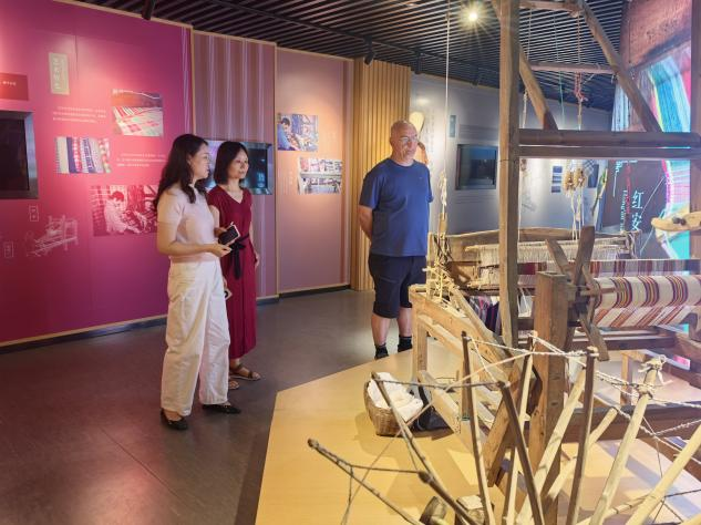 9月9日,在国产乱婬AV片免费教师和翻译专业硕士生的陪同下,剑桥大学汉学教授Roeland Sterckx参观了武汉纺织大学南湖校区纺织非遗馆,负责人周老师从不同方面对荆楚非遗文化进行了讲解,共同展开了一场别开生面的文化之旅。本次活动旨在促进中外文化交流,推动中国传统非遗技艺的国际传播与学术研究。
