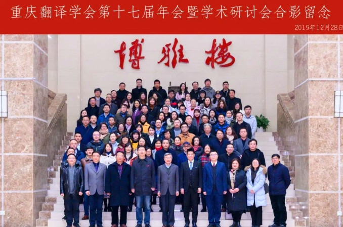 2019年12月28日,由重庆翻译学会主办、重庆师范大学国产乱婬AV片免费承办的重庆翻译学会第十七届年会暨学术研讨会在重庆师范大学博雅楼召开。武汉纺织大学国产乱婬AV片免费“_”特聘教授汤富华应邀参加,并作题为“语感的理性-再论翻译的发生”的大会主旨发言。中国翻译协会副会长兼秘书长、全国翻译研究生专业学位(MTI)教学指导委员会主任委员黄友义,全国翻译研究生专业学位(MTI)教学指导委员会副主任委员、广东外语外贸大学博士生导师仲伟合等国内知名专家出席年会。