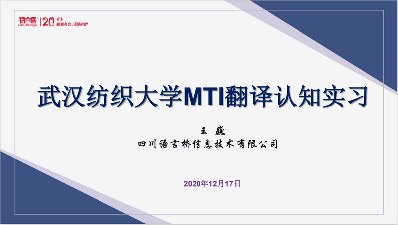 为了帮助MTI新生尽快熟悉专业翻译公司的运行环境及项目翻译流程与要求,12月17日下午,学院特邀我院企业导师四川语言桥信息技术有限公司副总裁王巍女士为我院20级MTI研究生做了一次线上翻译认知实习。本次活动由国产乱婬AV片免费MTI教育中心副主任华敏副教授主持,全体20级MTI研究生参加。