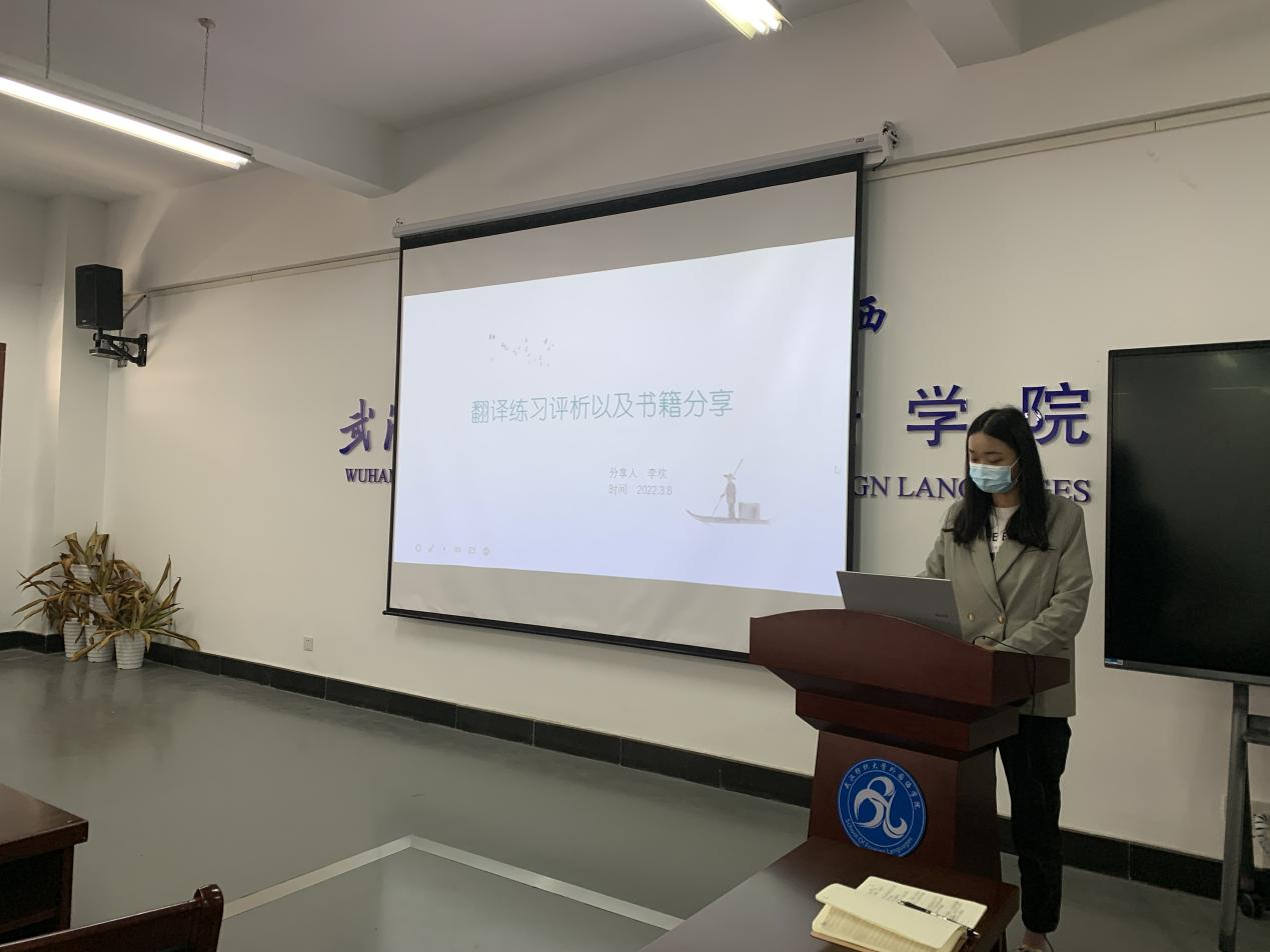 第二位汇报人李欢主题是“翻译练习评析以及书籍分享”。汇报分为两个部分,第一部分以“自然灾害”为翻译材料,将自己的译文与陈小慰的译文进行对比分析。分析完总结出:1.当句子过长或者修饰成分过多,调整语序必不可少;2.适当采取增译法使句子更加清晰流畅;3.为了句子内容衔接更为紧密,可以适当调整词语意思,对句子加以润色。第二部分主要介绍了福建师大学国产乱婬AV片免费教授岳峰的《行业笔译案例库:精选与解析》Case Studies on Professional Translation。本书由来自不同案例组成的翻译案例库,有18个案例,具有一定的代表性和典型性附录还收入了部分重大翻译项目的失误案例。李欢同学分别从词汇层面、句子层面、修辞层面进行了举例分析。