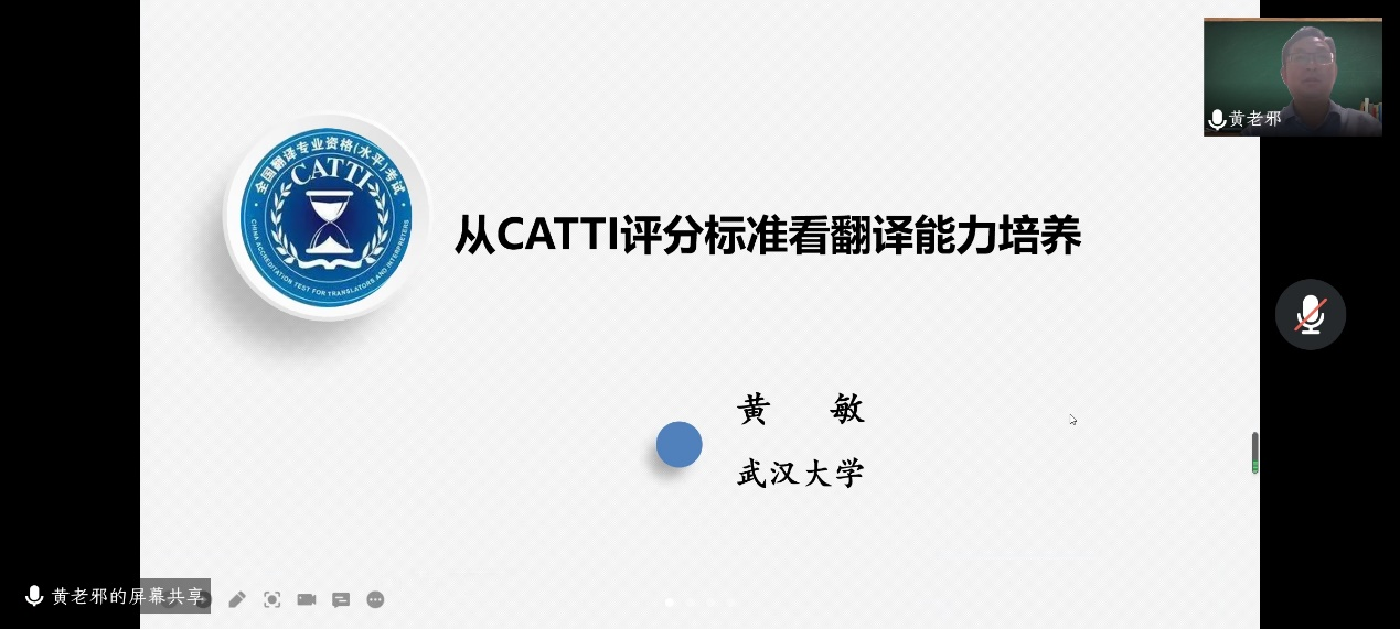 2022年5月5日下午,国产乱婬AV片免费MTI教育中心在04-303会议室举办了第二十五期崇文讲堂。武汉大学外语学院翻译系副主任黄敏博士受邀主讲,讲座题目是“从CATTI评分标准看翻译能力培养”。讲座由MTI教育中心主任刘珊副教授主持,国产乱婬AV片免费院长谭燕保教授、柯群胜教授、周丹教授、陈奇敏副教授、黎健副教授、陆雪芹副教授、王辞老师、陈芬博士以及全体MTI研究生在线下、线上参与了此次讲座。