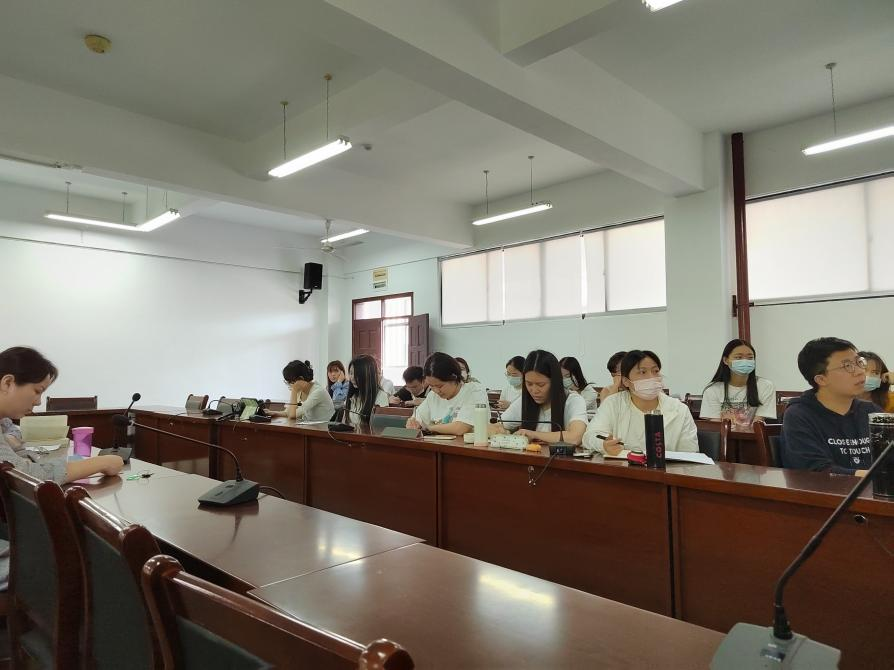 最后,刘珊副教授对黄博士的讲座进行了总结并表示感谢。在场的21级研究生郑震和柯萌分别就备考时对翻译速度的提升和文笔提高提出了问题,黄博士在解答时强调了词汇积累和熟练处理有规律的句型,在多练习中积累经验总结规律,并且在选择练习文本时应该多做应用类的翻译。他指出政府工作报告是涵盖各个应用领域的最佳翻译练习文本,要多次反复练习。