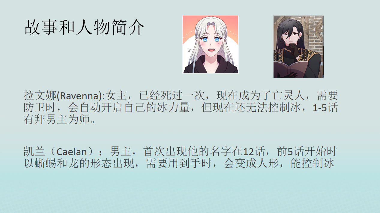第一位汇报人柯萌同学基于自己在传神语联公司实习时的漫画翻译任务,分享了“基于交际翻译理论的漫画《冰女》的翻译”。柯萌首先简介该漫画的背景和主人公,并概括其文本特征和适龄人群。然后她结合纽马克的文本类型理论与翻译交际理论,对漫画题材进行文本归类。柯萌指出,为了达到交际目的,漫画翻译的重点是向目标读者传递信息,而非照搬原文,因此译者在原文处理上拥有较大的弹性空间。她从词义选择、词汇替代、词类转换、句式转换、句意替换这五个角度分别展开了详尽的案例分析。柯萌最后总结道,在漫画翻译中,译者需在把握单词原意的基础上,结合语境和人物性格特点来确定词语的真实意义,译后还应适当调整句式,以尽量贴合目的语表达习惯。