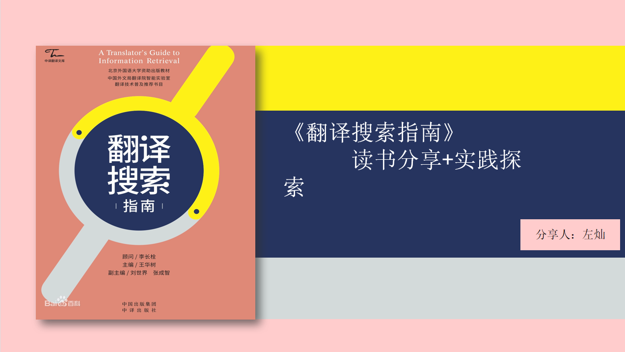 第三位发言人左灿同学的题目是“《翻译搜索指南》读书分享+实践探索”。左灿先对AI时代译者的能力进行了剖析,指出除了语言、文化和道德,技术手段中的搜商是译者翻译技术能力重要组成部分。随后,他使用具体例子进行了实操展示,如网络域名搜索、识图搜索、诱导词搜索、文件类型搜索、相关同类网站搜索等。左灿介绍了数个免费实用的语料库网站,如Linggle/Ludwig/Net Speak等,他讲解了如何用表达式搜索英文搭配的习惯表达,并分享了多个与译者效率息息相关的权威术语库、专业句酷以及专业词典。