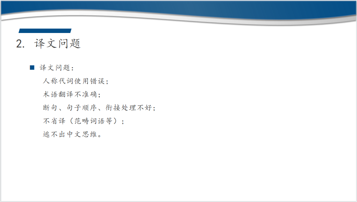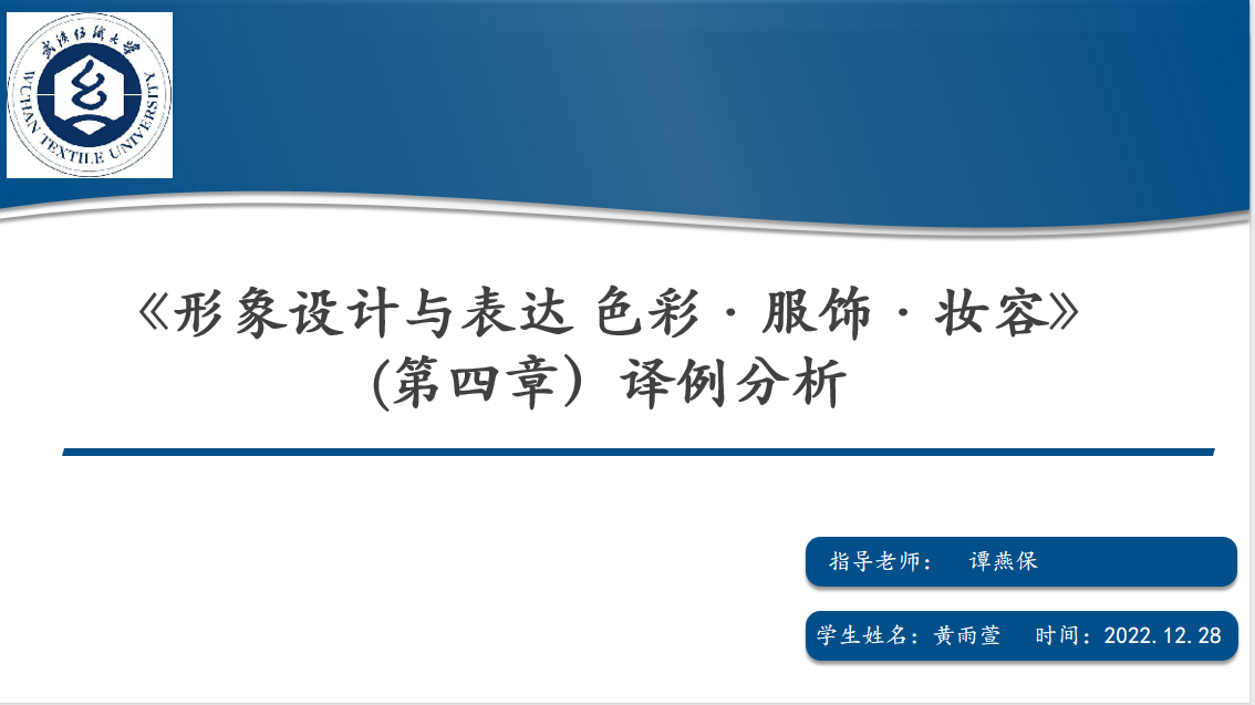 第二位汇报人代焦同学为我们带来了《形象设计与表达色彩·服饰·妆容》(第三章)翻译实例分析,分为文本分析、译文分析以及案例分析三个部分。代焦首先从内容与语言层面对翻译实践文本进行分析,然后结合案例,对其译文存在的问题进行深入剖析,并提出了解决办法。最后,代焦总结了自己在翻译过程中的不足之处,以期提醒同学们不要犯同样的错误,努力提高译文质量。