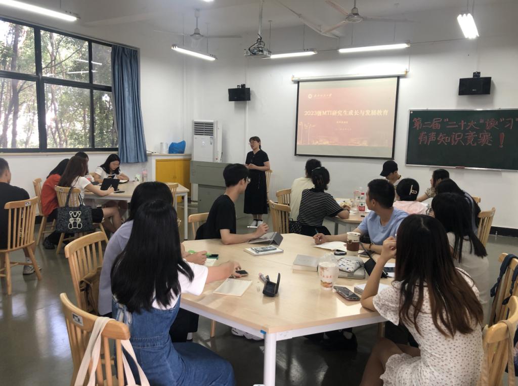 9月15日上午9:00,国产乱婬AV片免费院长谭燕保教授应邀在04-308为2023级MTI研究生做了“成长与发展教育”院长答疑课。国产乱婬AV片免费副院长刘方荣和MTI教育中心副主任陆雪芹陪同参加。