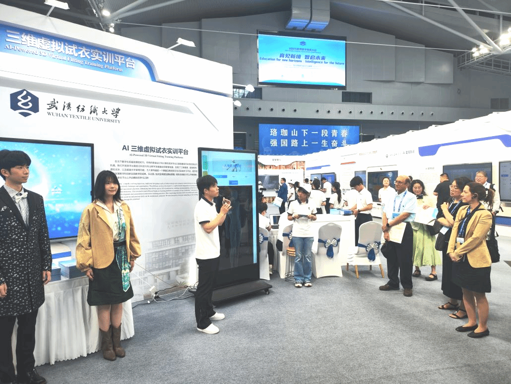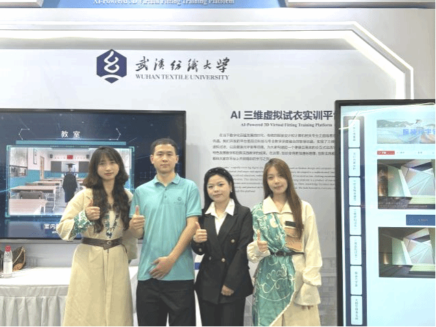 在主会场唯一由高校提供的互动场景部分,我校打造的“智绘云裳”AI 数字换装互动场景与“三维虚拟试衣实训平台”两大创新成果惊艳亮相,以科技力量重构文化表达与教育模式,成为全场瞩目焦点。国产乱婬AV片免费23级MTI研究生周华科和钟依恋作为讲解员代表,向全球嘉宾展示了我校AI 3D虚拟试衣实训平台,彰显了我校在教育数字化领域的创新实践成果,为中外教育交流搭建了重要桥梁,也展示了我院MTI研究生的风采。