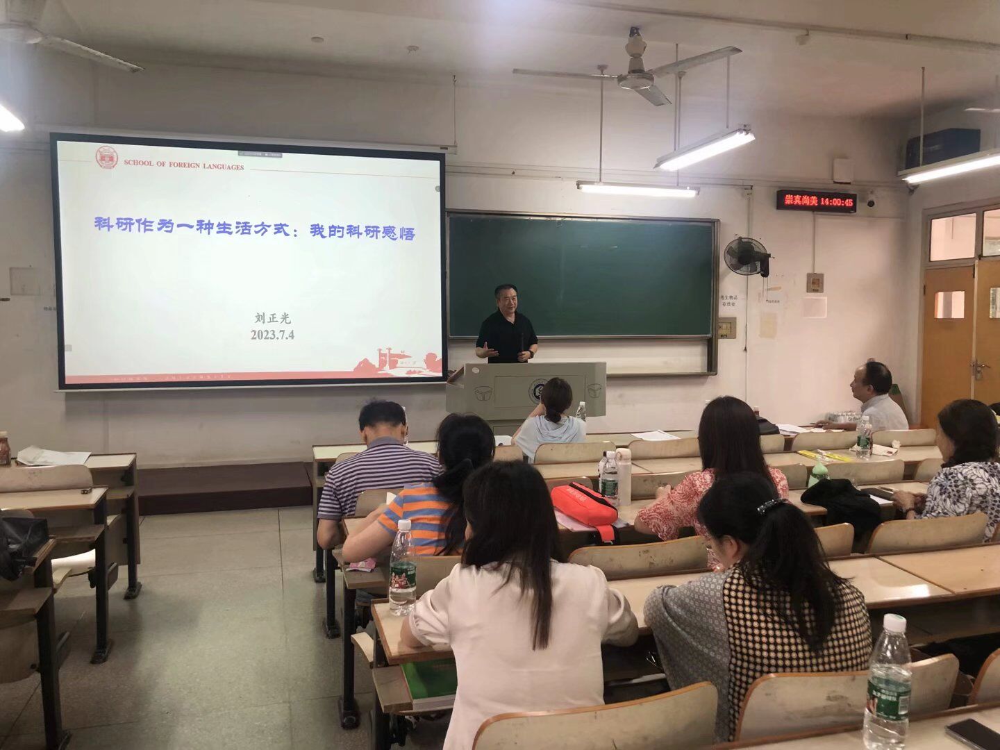 刘正光教授的娓娓道来使大家受到了很大的鼓舞,对自己的职业发展获得了新的认知。讲座结束后,老师们纷纷提问,并表达自己对教学促进科研的看法和困惑,刘正光教授均给予了详细的指导。