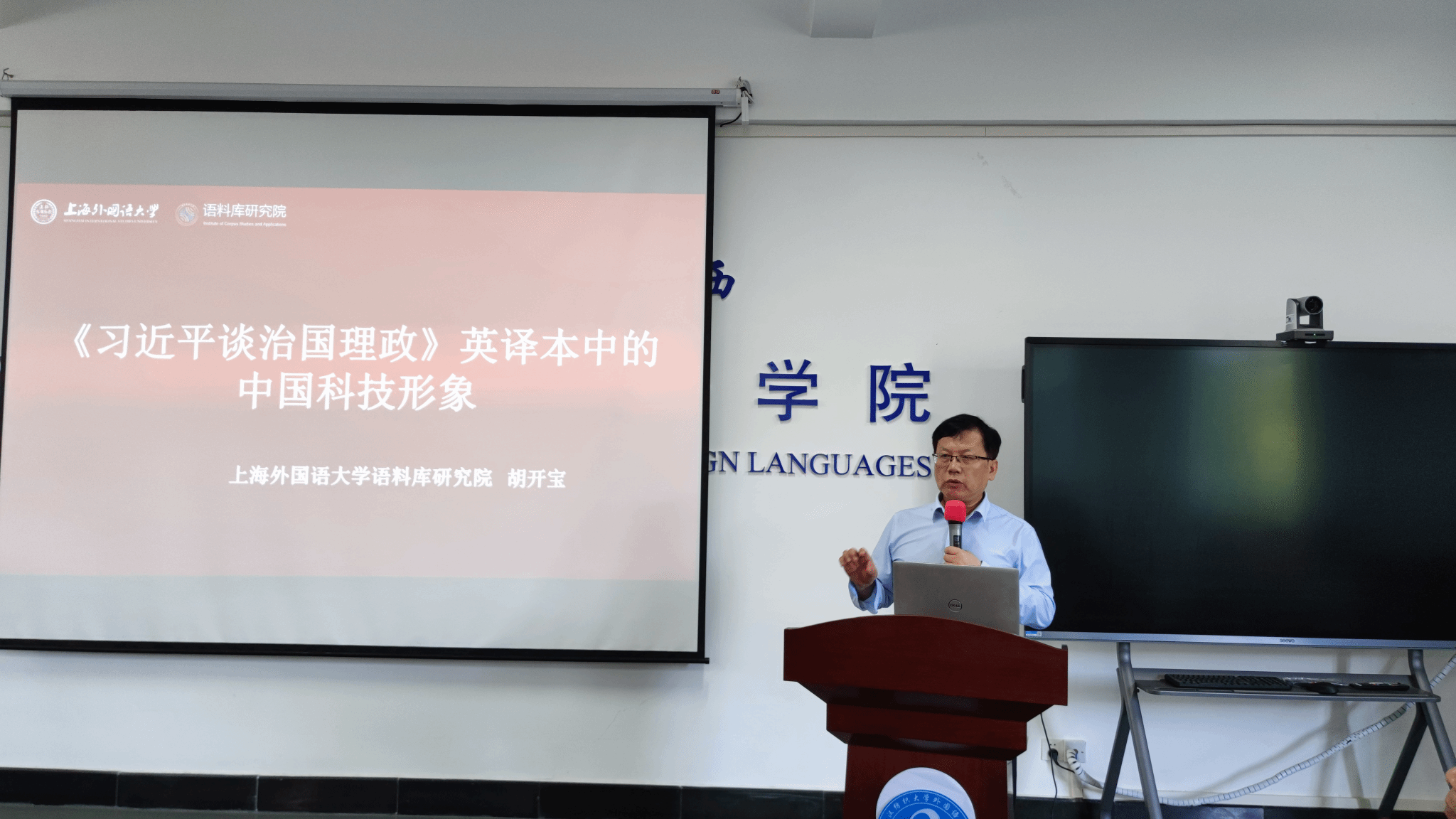 胡开宝教授讲座的题目为“《习近平谈治国理政》英译本中的中国科技形象”。胡开宝教授从“形象”的定义入手,分析了中国科技形象的定义及分类。他利用上海外国语大学语料库研究院研发的《习近平谈治国理政》多语种数据库综合平台,依据批评话语分析和批评翻译学理论,对《习近平谈治国理政》英译本科技话语中的高频名词、高频动词、情态动词以及关键词science, technology以及China等词汇的搭配进行分析,并探讨《习近平谈治国理政》英译本中的中国科技形象。《习近平谈治国理政》英译本所塑造的中国科技形象主要表现为积极有为,重视创新与科技革命,重点攻克核心技术,坚持科技发展面向经济社会发展和民生需求,追求合作共赢等。他认为上述特征主要取决于源语的话语风格以及译者翻译策略和方法的应用。