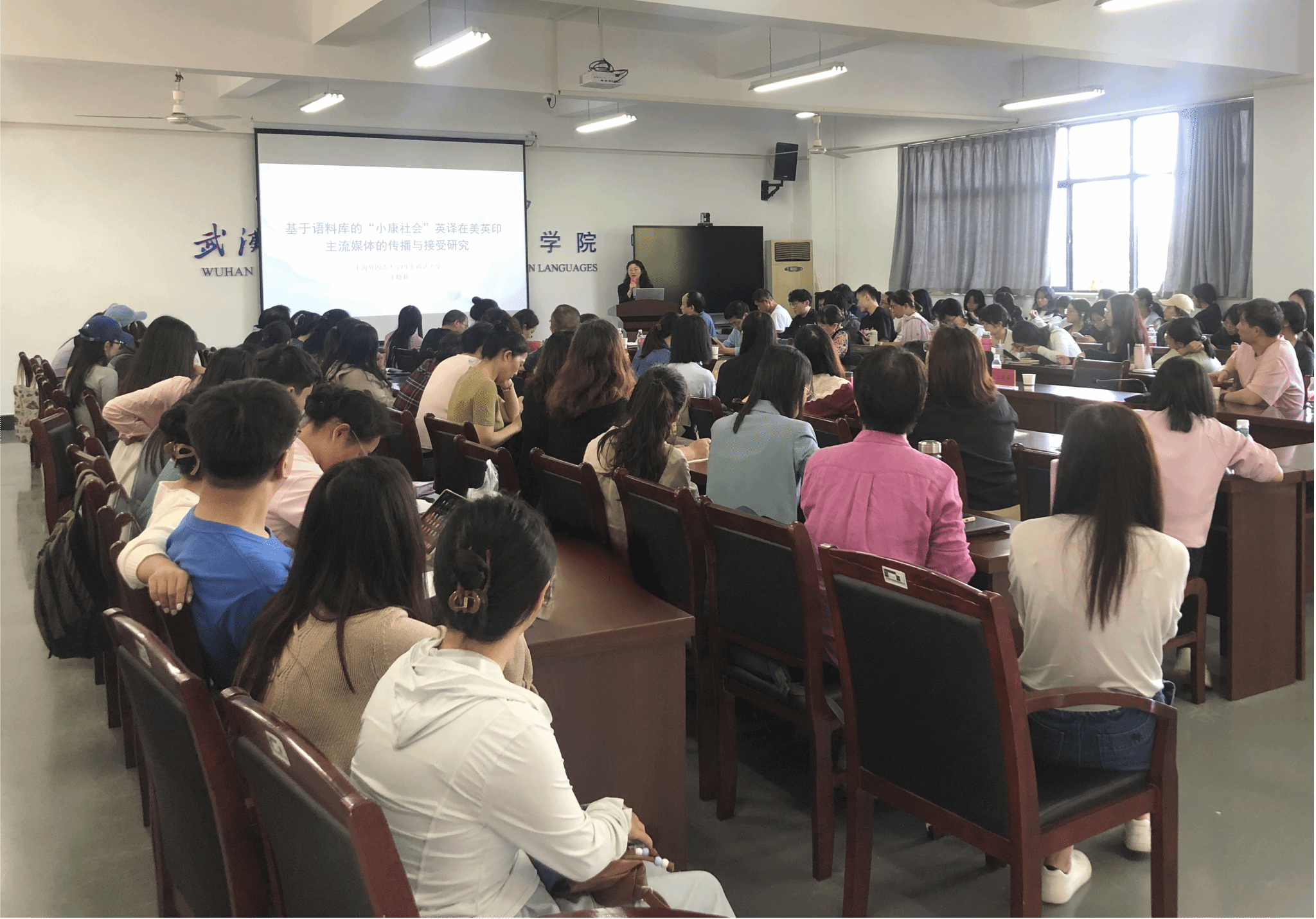 胡开宝教授随行的博士后王晓莉分享了她的“基于语料库的‘小康社会’英译在美英印主流媒体的传播与接受研究”。她通过基于语料库的批评话语分析方法考察了“小康社会”英译在美英印主流媒体的传播与接受状况。