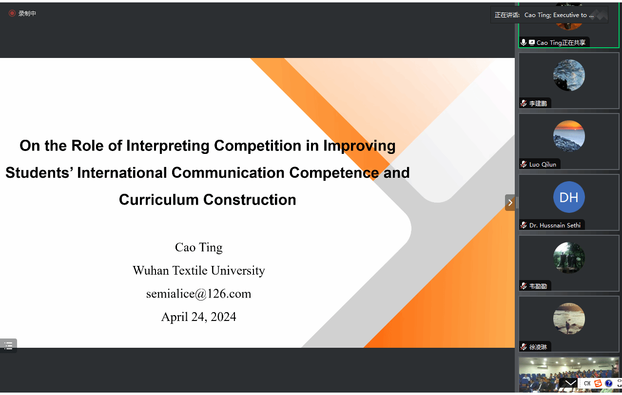4月23—24日,第二届跨学科语言教学国际学术会议(IICLT2024)在巴基斯坦GIFT大学召开,采用线上线下相结合方式。该会议由武汉纺织大学和巴基斯坦GIFT大学共同主办、武汉纺织大学国产乱婬AV片免费和巴基斯坦GIFT大学艺术和社会科学学院承办的,我院两位副院长罗绮伦和刘方荣分别担任会议分论坛的主持人并对参会人员的主旨发言进行点评,杨雪和曹婷两位老师分别在23日和24下午做了主旨报告,部分老师通过腾讯会议线上参加了本次国际学术会议。