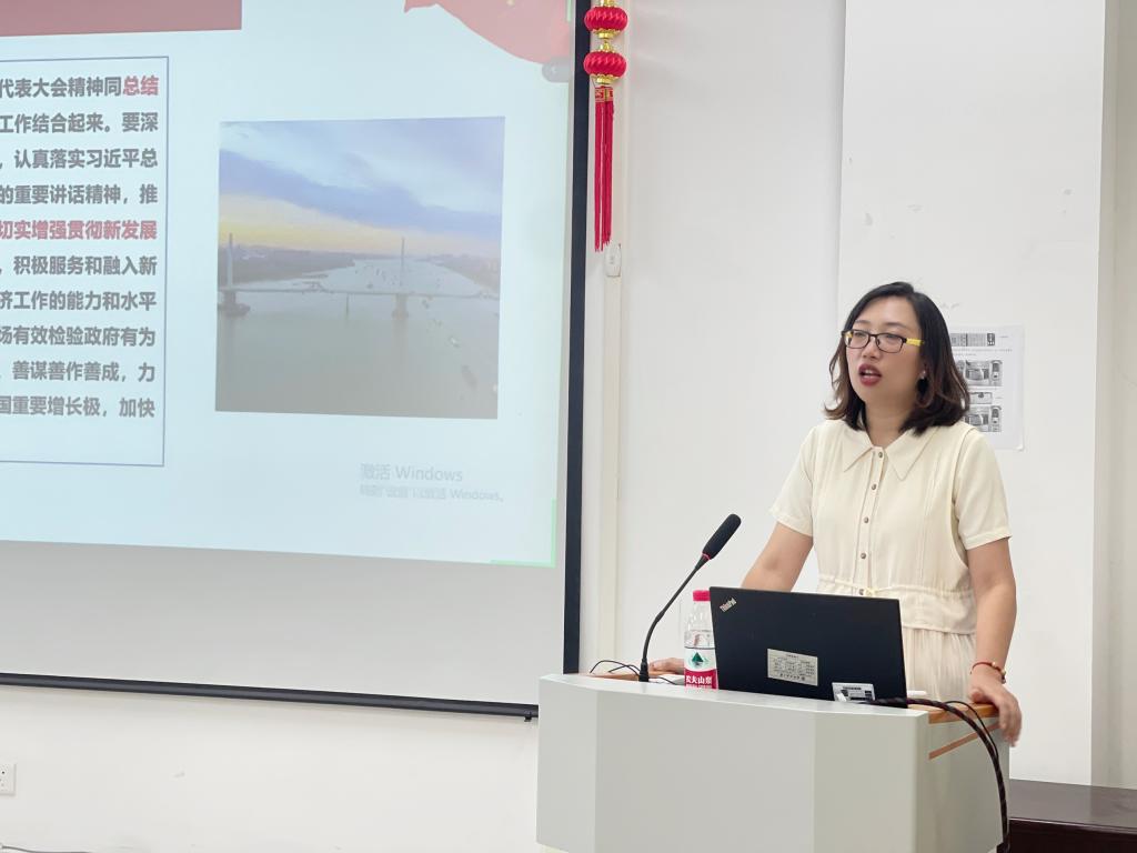 会上,刘艳介绍了湖北省第十二次党代会的召开情况,并从过去五年的工作、准确把握新发展阶段湖北面临的新形势新任务、完整准确全面贯彻新发展理念、加快建设全国构建新发展格局先行区、坚持和加强党的全面领导,切实提高建设全国构建新发展格局先行区的能力和水平等五个方面对湖北省第十二次党代会报告的主要内容进行了全面深入解读。刘艳指出,大会报告明确了今后五年湖北工作的总体要求、奋斗目标、重点任务和具体举措,是指导今后一个时期湖北发展的行动纲领。刘教授强调,作为湖北高校,武汉纺织大学在科研创新上坚持“抓前沿、上水平、入主流、显特色”的策略不放松,通过此次党代会的召开,我们要找准学校和学院教育发展的目标和定位,充分发挥高校高水平人才培养主力军、区域创新体系建设排头兵、增强发展新动能策源地作用,为湖北建设全国构建新发展格局先行区作出纺大的贡献。