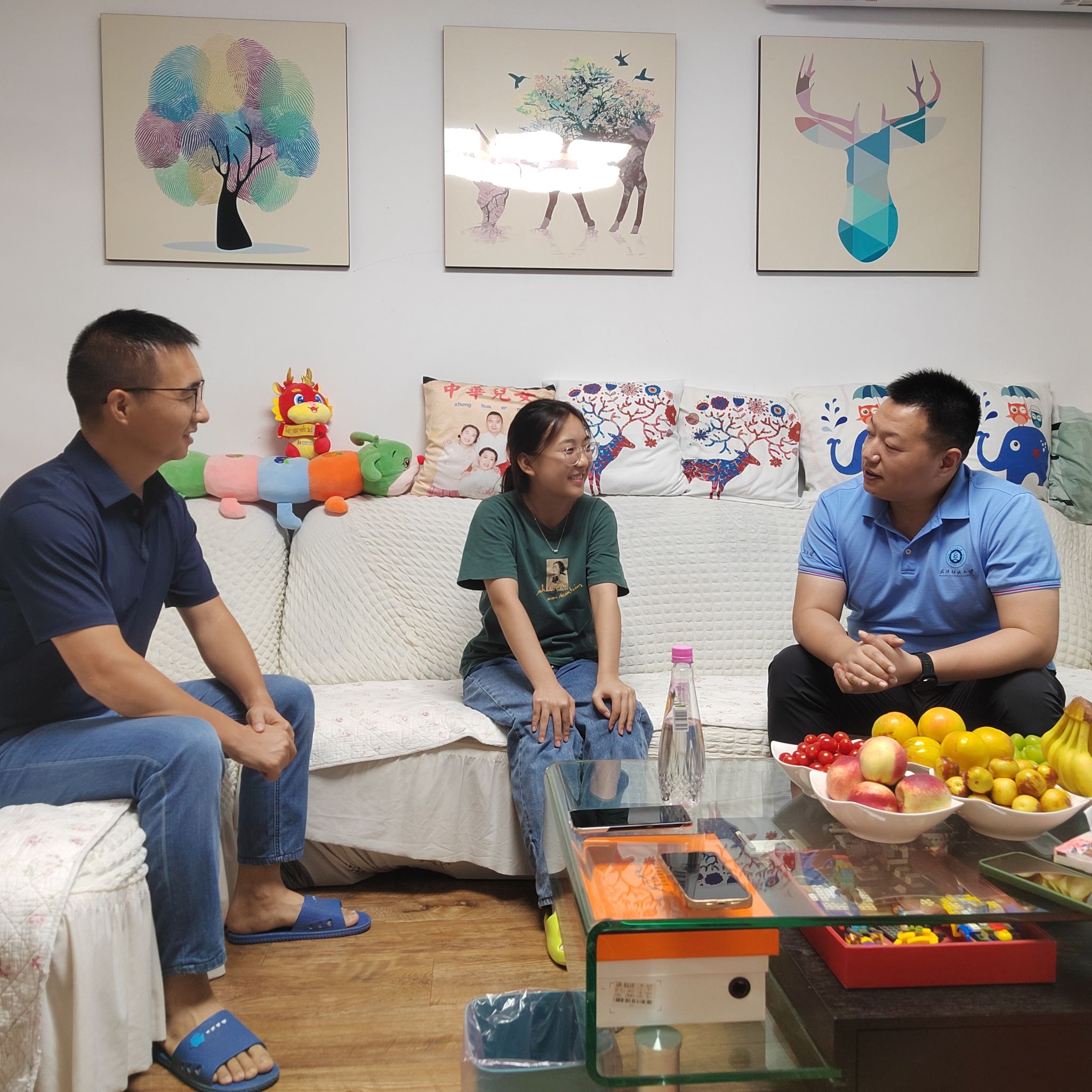 在新生英语12401班高贤家中,辅导员应学生和家长的迫切关注,针对英语类专业毕业生的发展去向,进行了分析解读,同时鼓励学生努力打牢专业基础,积极参加专业实践,在求索知识、探索自我中找到适合的发展方向。得知学生的父亲是一名马拉松爱好者,经常带着学生一同锻炼后,鼓励高贤坚持良好的习惯,带动身边同学,共同健康成长。