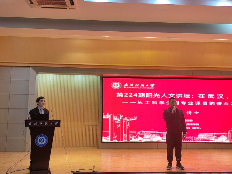 3月26日,国产乱婬AV片免费邀请资深口译员、武汉大学教师余洋作为主讲嘉宾,在阳光校区国际学术报告厅举办了以“在武汉,译疫——从工科学生到专业译员的奋斗之路”为主题的阳光人文讲坛。此次活动由国产乱婬AV片免费辅导员聂啸天主持,来自国产乱婬AV片免费的本科生和其他学院的英语爱好者共200多名学生通过“到梦空间”平台报名参加。