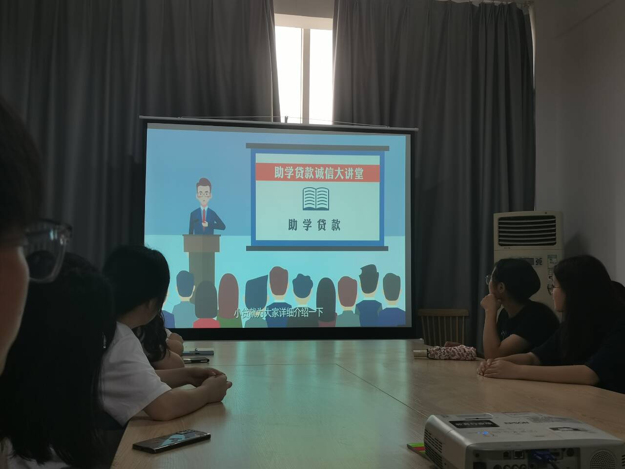 会上,甘老师围绕国家助学贷款政策解析、诚信日的由来、诚信还贷教育、远离校园不良贷款四个方面,向同学们介绍了国家开发银行助学贷款的申领流程、还款、违约后果等内容,同时为同学们讲解了基本征信知识,叮嘱同学们要树立良好的诚信意识,要诚信考试,诚信还款,诚信做人,并对于个人信息安全和校园贷等热点话题与同学们进行了详细探讨,提醒同学们在接到类似于电信诈骗电话时,要保持清醒,可以通过查个人征信报告等途径,了解自己的征信状况,防范校园诈骗,远离“校园贷”。