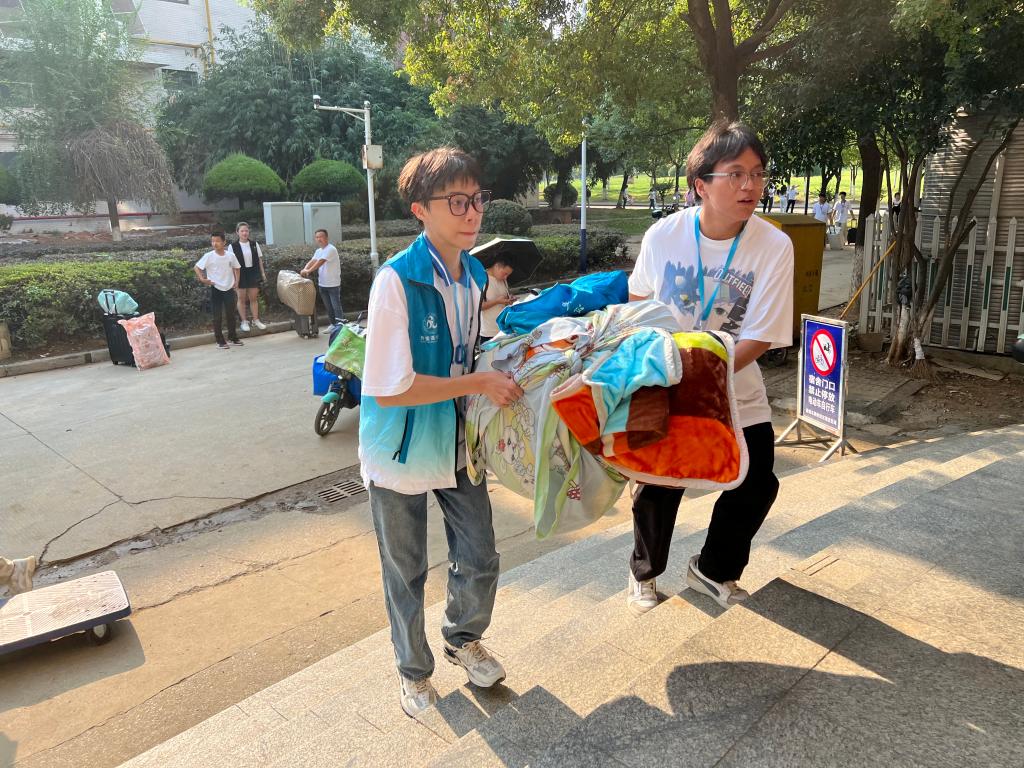 清晨,和煦的朝阳洒满校园每一个角落,院领导、班主任、辅导员和志愿者们早早到达岗位,带领新生报到、帮助新生搬运行李、领取书籍,志愿者的身影穿梭在学生公寓楼栋之间,热情的微笑、周到的服务,欢迎新生回家。