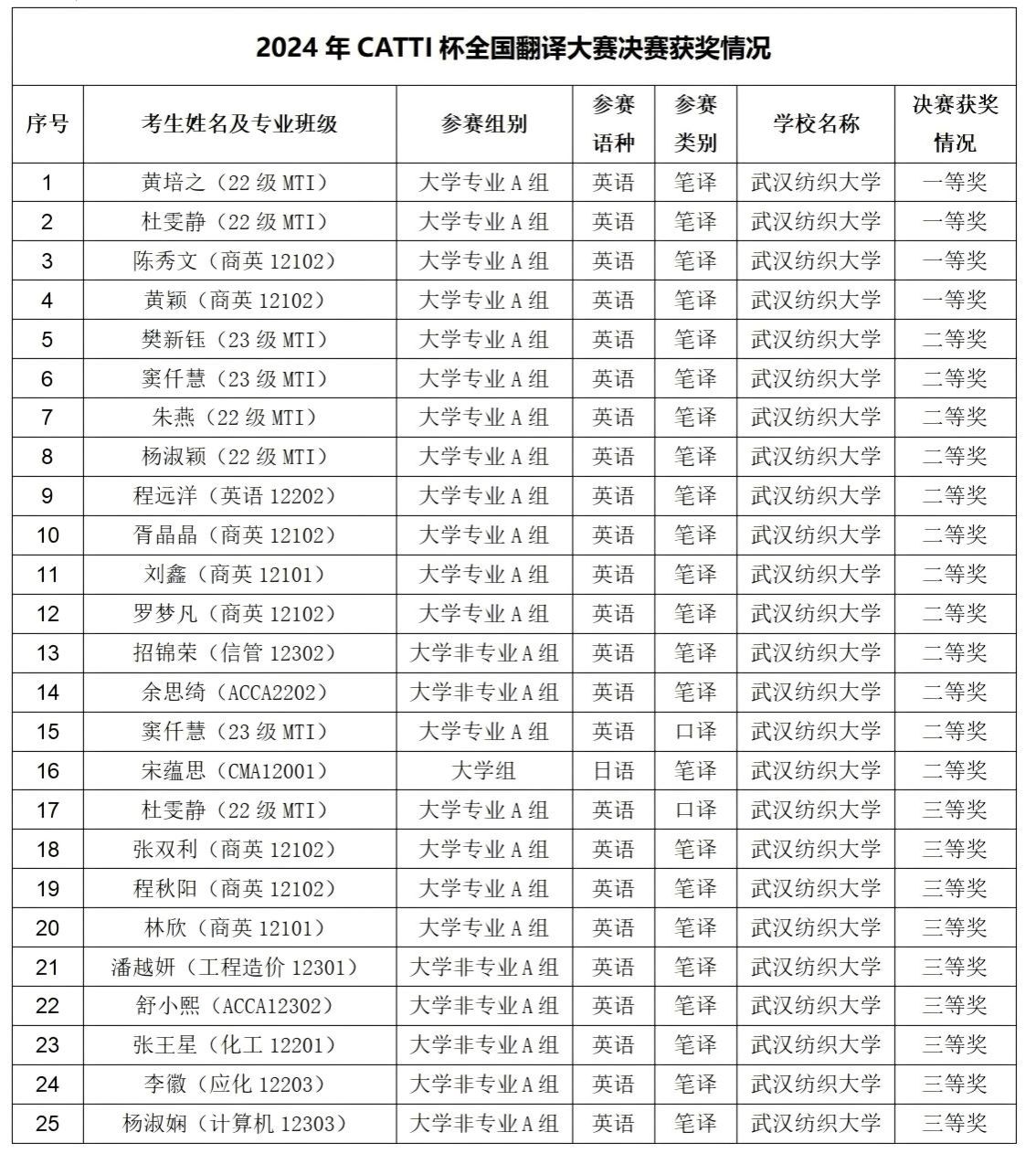 近日,CATTI中心公布2024年CATTI杯全国翻译大赛成绩,我校学子决赛中获得一等奖4项、二等奖12项和三等奖9项的可喜成绩。