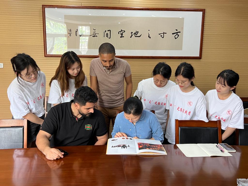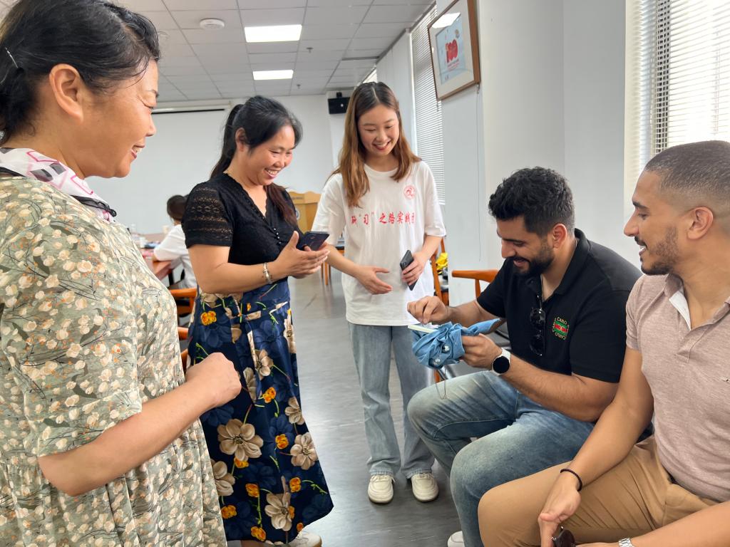 其间,研“习”之路实践团队员们与非遗传承人采取座谈研讨、问卷调查等方式,对荆楚文化走出去开展了深入调研。国际留学生和非遗传承人积极建言献策,并就“文化外译难点”“荆楚文化如何融入世界文化生态圈”等议题进行讨论,现场气氛热烈、精彩不断。传承人向实践队员们介绍了各自的传承项目,与国际学生一起体验荆楚非遗挑花。汉秀传承人王芳表示,文化因交流而丰富,因交融而多彩,很高兴有这么多年轻的大学生喜欢我们的非遗项目,也希望同学们通过自己的力量为荆楚文化和荆楚非遗的传播贡献力量,让更多的人了解非遗、认可非遗、支持非遗的保护和传承。