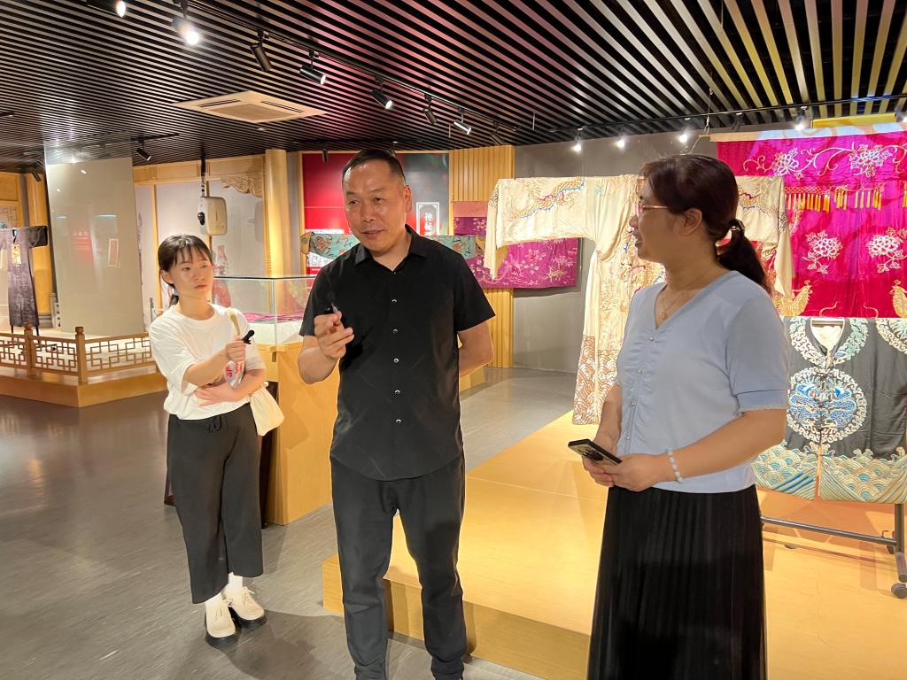 在湖北省非物质文化遗产研究中心,中心主任叶红光教授向实践团同学们介绍了荆楚纺织非遗的现状、传承谱系的建立和对外交流的反响与成果,对国产乱婬AV片免费的同学们能够关注荆楚文化和非遗的外译表示赞赏。叶红光表示,荆楚非遗是荆楚文化的重要组成部分,是传承技艺现代价值观的表达,其内涵不仅包含了中华优秀传统文化,也将现当代的“筚路蓝缕”的艰苦奋斗精神、“抚夷属夏”的开放包容精神、“上下求索”的锐意进取精神、“深固难徙”的爱国主义精神等精神谱系赋予其中。荆楚非遗的外译对荆楚文化的国际传播具有长远意义,希望国产乱婬AV片免费的同学们专心于此,专注于此,为荆楚文化的对外传播贡献自己的力量。非遗社团指导老师郎丽为实践团同学进行了展厅讲解。