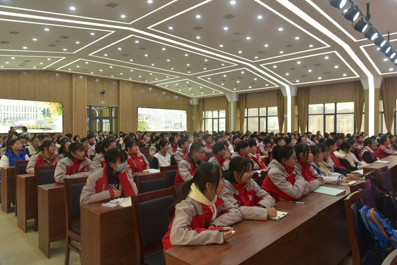 下午四时许,谭院长应邀在秭归一中五楼大会议室,以“英语学习”为主题展开讲学活动。讲座中,谭院长首先引用一处“网络语段”佐证出当前社会中存在着的“语言狂欢”现象,引发在座五百余名学生的极大兴趣与高度关注;接着,她以中英映射于文化生成与社会形态上的差异性展开剖析,并与学生展开积极互动。随后,她围绕学生高中阶段英语语法写得的痛点、难点——时态、动词非谓语等进行具体实例讲解,在引发在座学生广泛共鸣的同时也自然过渡到对“汉语诗意性”的阐释。除此之外,谭院长还结合大学课程《英语写作》为学生们讲解高中生写作中时常出现的错误与疏漏。