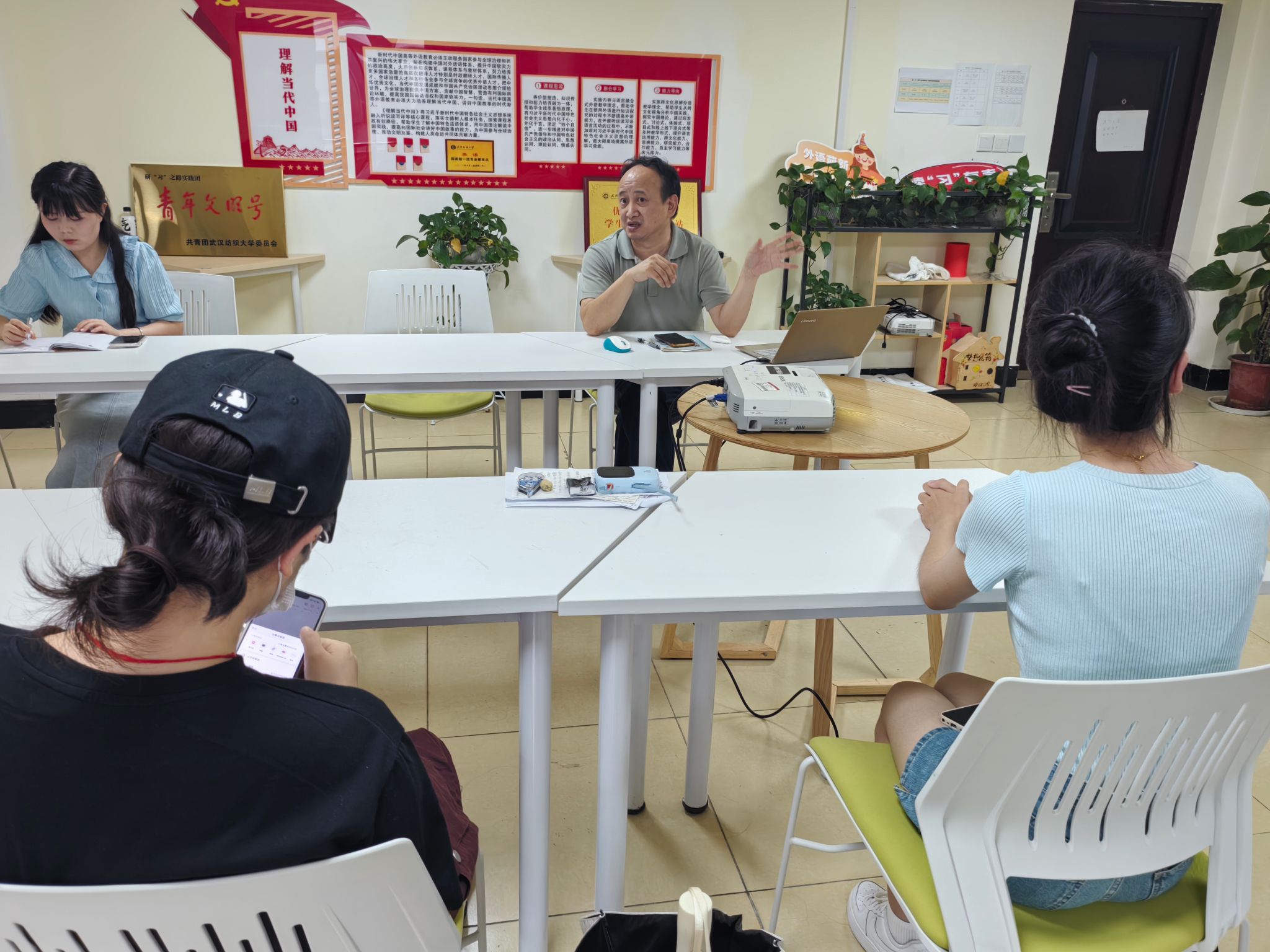 为促进准大四毕业生尽早开展学分清查,顺利完成本科学业任务,6月19日下午,国产乱婬AV片免费在“读习有声”学生成长服务站开展本科生学业完成情况院长答疑课。国产乱婬AV片免费副院长罗绮伦、英语系主任王越、商务英语系主任吴志杰以及2021级学生代表参加此次座谈。