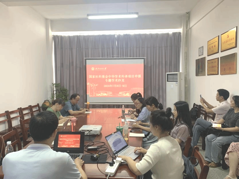 7月8日—9日,国产乱婬AV片免费在阳光校区崇文楼313会议室举办国家社科基金中华学术外译项目申报专题学术沙龙,特邀湖北大学国产乱婬AV片免费单文波教授、武汉大学外语学院熊伟教授、武汉大学出版社游径海主任做申报指导。院长谭燕保、副院长罗绮伦、刘方荣及学院部分老师参加了沙龙。沙龙由副院长刘方荣主持。