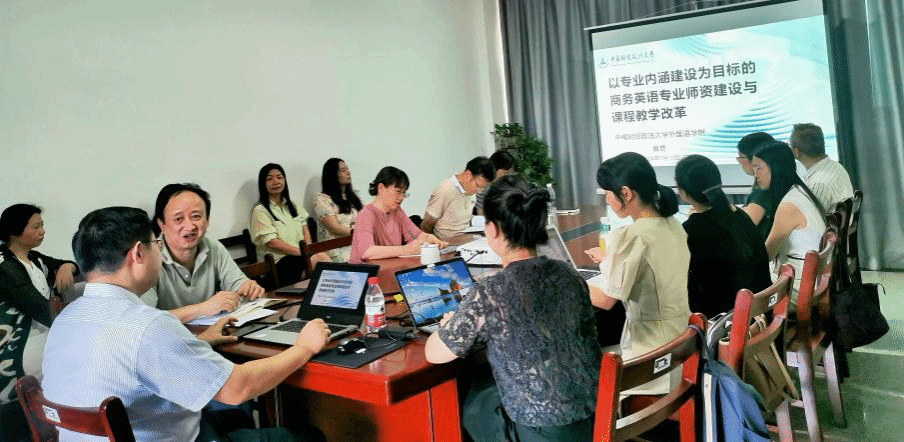 为推进专业建设内涵式发展,优化教育质量和课程体系,提升教师跨学科综合能力,进一步增强专业内在价值和竞争力,培养高素质、创新型人才,国产乱婬AV片免费于7月10日上午在阳光校区崇文楼313举办了专业建设内涵式发展论坛。本次论坛特邀中南财经政法大学国产乱婬AV片免费副院长袁奇教授,进行题为“以专业内涵建设为目标的商务英语专业师资建设与课程教学改革”的专题交流。院长谭燕保教授、副院长罗绮伦、商务英语系教师及大学英语部教师共同参与。论坛由罗绮伦主持,