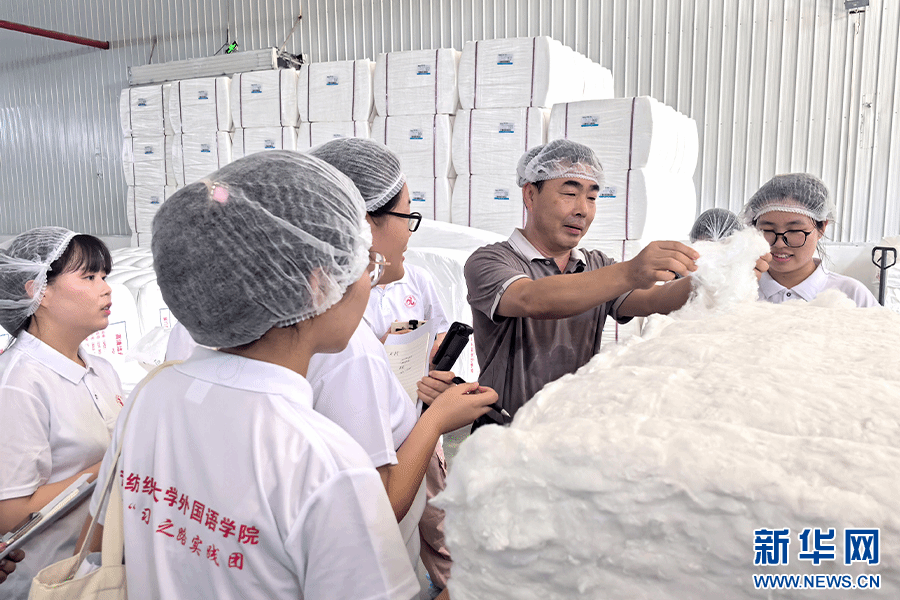 图为武汉纺织大学开展“探寻三线建设历史 赓续红色纺织文化”社会实践。新华网 发