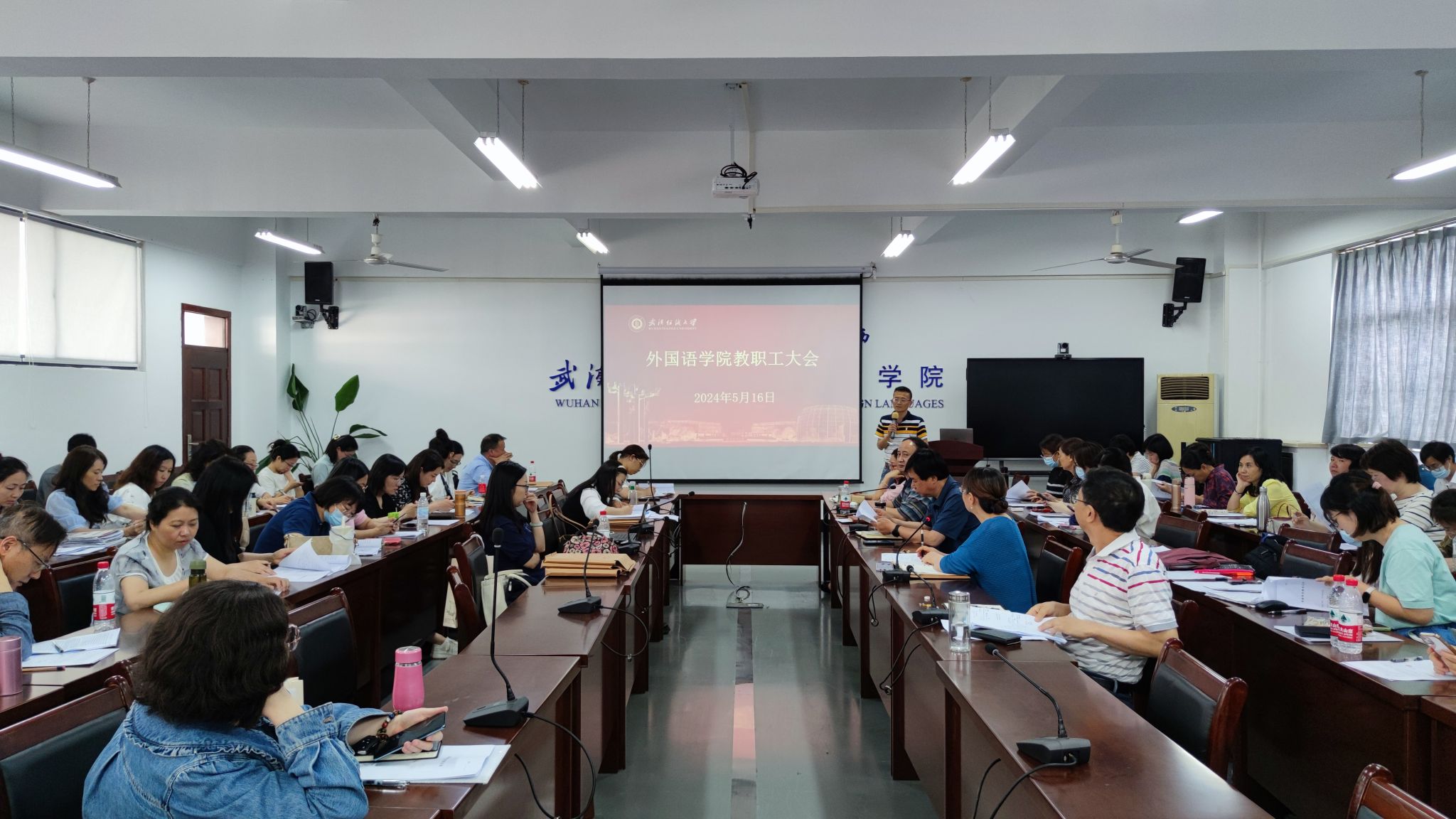 5月16日下午,国产乱婬AV片免费在04-303会议室召开全体教职工大会,开展政治理论集中学习,学院党委书记胡中原主持会议,全体党员教师、教职工代表参加会议。