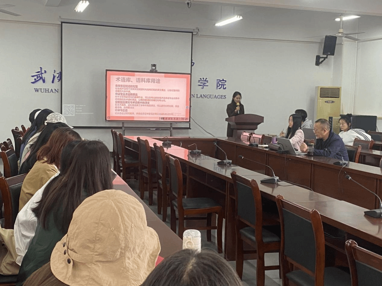 祁妙言同学首先分享语料库知识,讲解涵盖术语库、语料库用途介绍和实际应用案例,详细介绍了linguee、联合国术语库、术语在线等资源,还以二笔真题展示linguee术语库使用方法,并分享自身翻译实践中利用这些术语库的经验。张敏同学做了题为“新质生产力视域下中国服饰文化翻译对外传播路径研究”的报告,从研究背景、服饰文化对外传播、四维度探究、三业态传播到结语,全面展现其研究视角与深度。刘志豪同学从备考教材、经验、社会实事、经济贸易等专题分析,分享CATTI二笔实务备考心得。