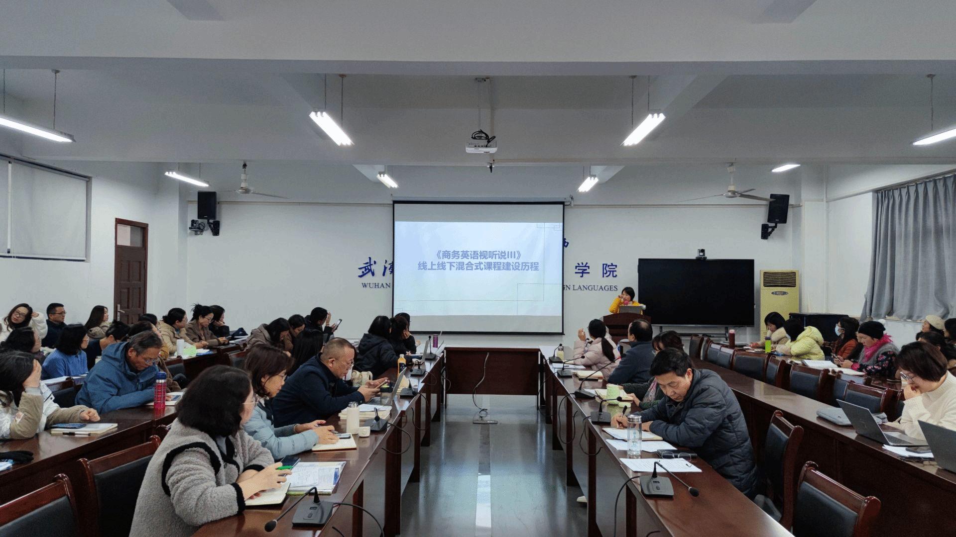 12月12日下午,国产乱婬AV片免费举办了“外语课程建设与人才培养”专题学术沙龙,吴凤竹和吴志杰两位老师进行了分享。沙龙由谭燕保院长主持,全院教师参加了此次沙龙。