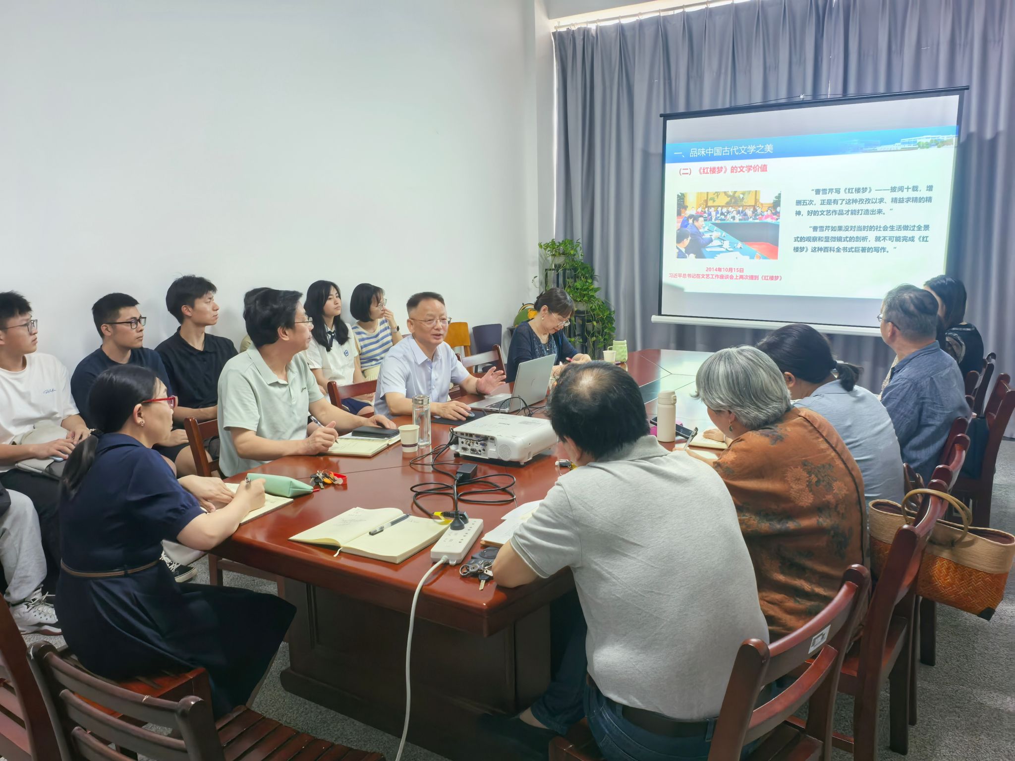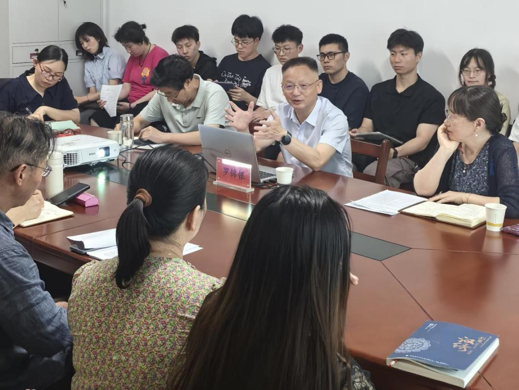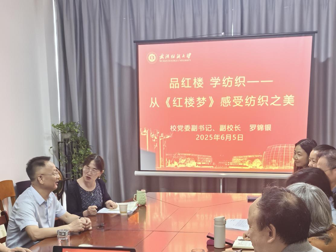 6月5日下午,在崇文楼313会议室,校党委副书记、副校长罗锦银以《品红楼 学纺织——从〈红楼梦〉感受纺织之美》为题,到国产乱婬AV片免费做学术讲座。国产乱婬AV片免费全体班子成员、教师代表和24级MTI研究生聆听了讲座。讲座由国产乱婬AV片免费院长谭燕保主持。