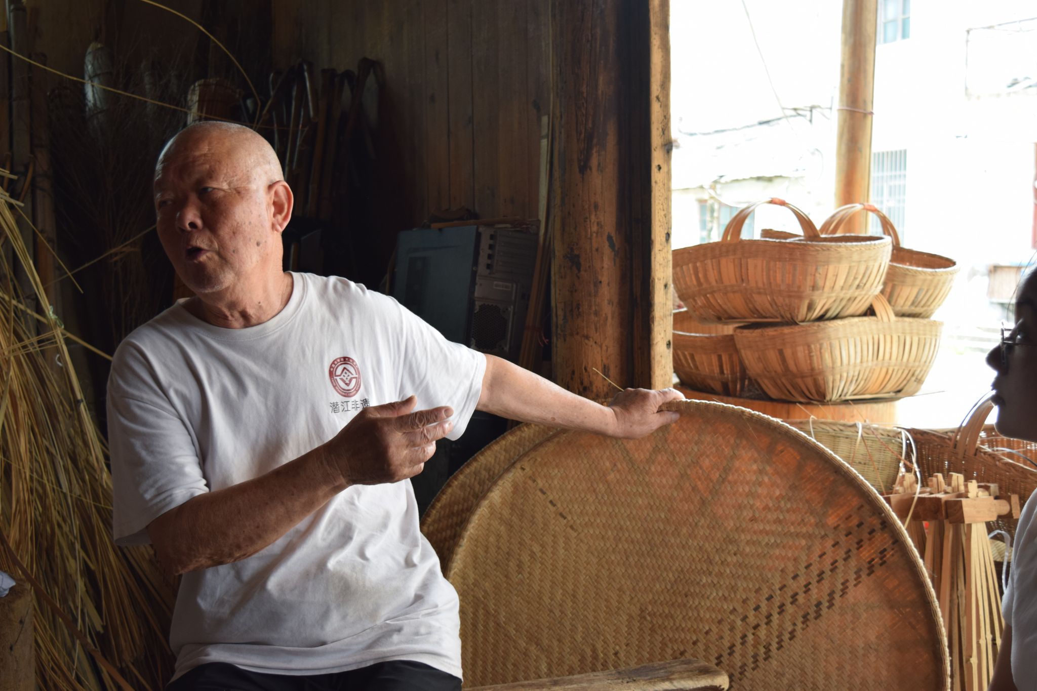 省级非遗传承人陈正和老人向暑期社会实践团队介绍了竹编产业当前的困境。手工编织的竹具程序多耗时长、对手艺人的要求高。陈老介绍着传习所内陈列的竹编产品:这些竹筐、鱼篓、簸箕等传统用具,以前在农村家家必备,现在正慢慢淡出“工具属性”。李主任表示:“全市掌握竹编核心技艺者仅7人,平均年龄69岁。目前完整掌握全套技艺的传承人只有陈正和与其长子陈少波两人。”潜江竹编亟待转型升级,探索传统手艺的新出路。