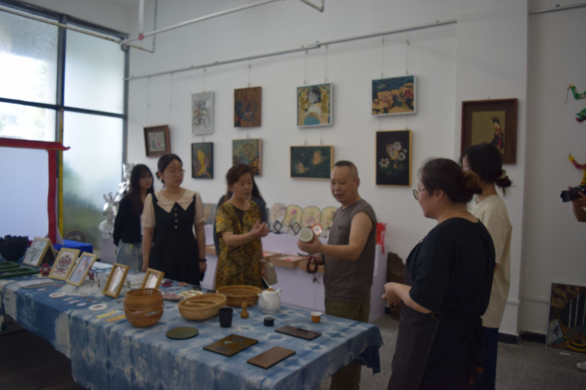 实践团队参观了江汉艺术职业学院的“非遗进课堂”作品展。学校开设了体验非遗、学习非遗的课程,如潜江竹编、皮影戏、漆器等,为非遗传承注入了新鲜血液。学院通过系统教学,让学生深入了解非遗技艺的历史文化内涵及其制作工艺流程,培养了一批对非遗充满热情的年轻人,为潜江竹编等非遗项目延续了生命活力。