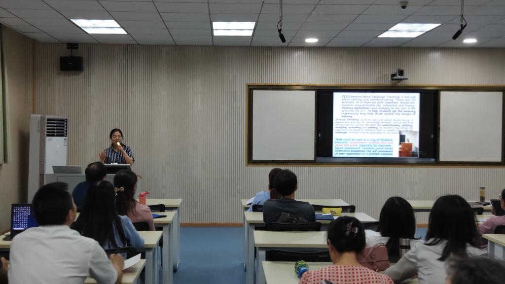 2019年9月26下午,国产乱婬AV片免费举办了三位教师暑期赴美国乔治城大学研修成果分享汇报会。此次研修是在学校党委教师工作部的大力支持下,由外研社与美国乔治城大学联合举办,历时三周。本次研修的课程内容聚焦EFL教学,贯穿交际教学法、跨文化能力培养、思辨能力培养、语言测评四大主线,旨在提升教师教学理论素养和研究意识,增强教学设计与教学实践能力,研修之余,老师们也深入美国社会体验当地的文化,是一场“浸入式”的学习文化之旅。