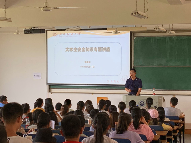 9月11日下午,校保卫处副处长朱美龙应邀为学院2019级新生做入学教育第五课——安全知识专题教育。朱处长用生动的典型案例为新生们展示了潜伏在校园内部及周边的各类危险。他强调,学生在校园内遭受校园欺凌、电信诈骗时,应首先保持冷静,可以第一时间拨打学校保卫处电话,校园执勤人员会第一时间赶赴现场处理。