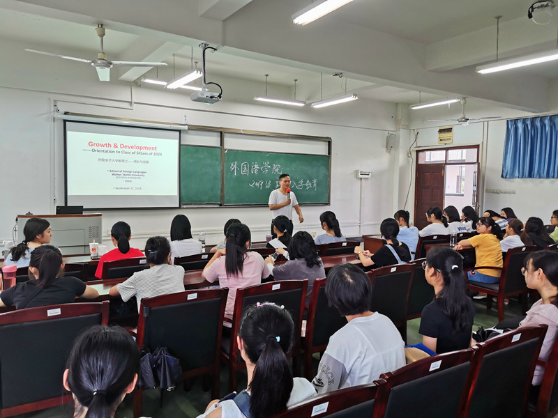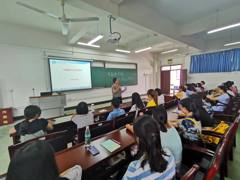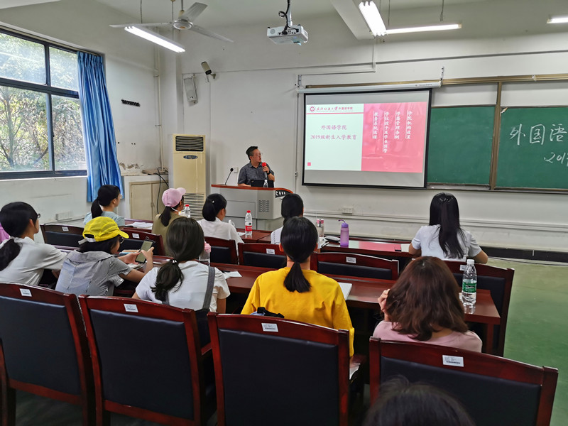 9月11日上午,国产乱婬AV片免费副院长罗绮伦主讲入学教育第三课——专业发展教育。罗院长以全英文交流的方式与2019级新生们进行交流,积极引导新生们用英语进行交流发言,这让新生们感觉到耳目一新。罗院长详细介绍了英语、商务英语专业的人才培养方案内容,向新生们讲解了各类课程学分设置的目的和意义。他希望2019级新生们能尽快转变角色,适应专业发展需求,积极调整学习状态,为自己的大学四年做一份详细的学习规划。