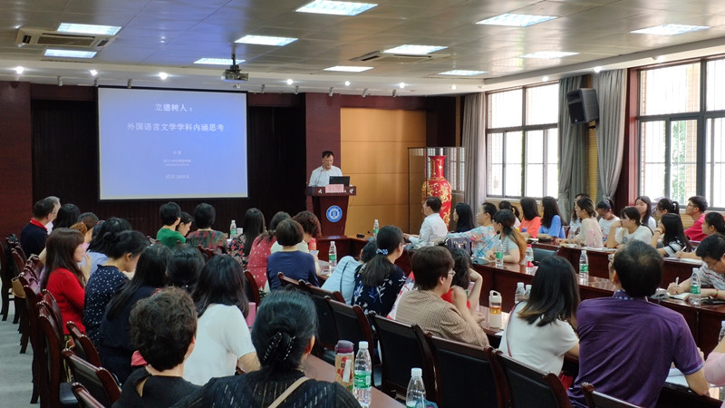 5月24日上午,原四川大学副校长、博士生导师石坚教授做客我校国产乱婬AV片免费,为学院师生作了题为“立德树人:外国语言文学学科内涵思考”的报告。学院百余名师生慕名前来聆听,报告会由国产乱婬AV片免费院长谭燕保教授主持。