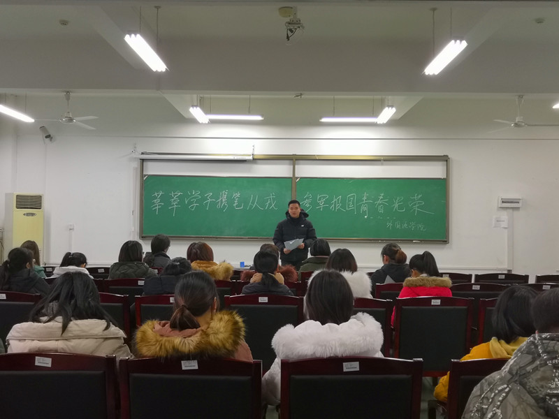 按照学校党委武装部统一部署,学院于1月6日晚在崇文楼303会议室开展“携笔从戎、绽放青春”征兵政策宣讲活动。活动由辅导员阎浩老师主持。