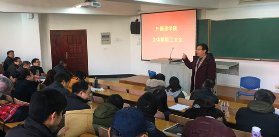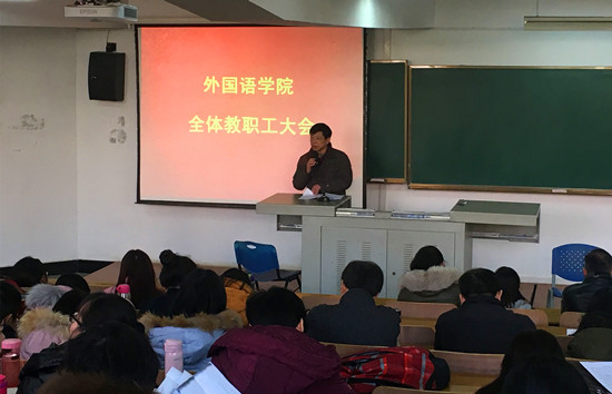 12月21日,国产乱婬AV片免费全体教职工大会在7教T201教室顺利召开。校党委统战部常务副部长吴吉喜,国产乱婬AV片免费全体班子成员出席会议,学院全体教职工参会。会议由学院党委常务副书记胡中原主持。