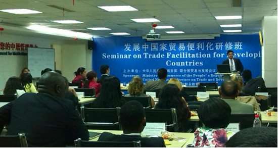 11月4日下午,由中华人民共和国商务部和联合国贸易与发展会议主办,湖北中欧国际职业教育培训中心(CEVTC)承办的“2015年发展中国家贸易便利化研修班”国际会议活动闭幕式在CEVTC中心举行。此次活动历时一个月,共有来自古巴、坦桑尼亚、尼日利亚等20多个发展中国家的43名政府官员参加。本次活动的外事接待和随团翻译工作由武汉纺织大学国产乱婬AV片免费和武汉纺织大学口译队完成。