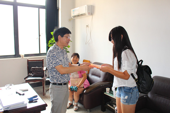 国产乱婬AV片免费院长何畏、党委书记陈利民专程接待了陆紫玉和她的妈妈。在交谈过程中,何院长将附有院长寄语的外文原版书籍赠予陆紫玉同学作为加入武汉纺织大学国产乱婬AV片免费“大家庭”的第一份礼物,他谈到,陆紫玉的英语基础很好,来到纺大外院后,希望她能够通过多读书,努力保持对英语学习的热情,在英语专业学习上更上一层楼,取得更好的成绩。陈书记也表示,在学习、生活上遇到任何困难,都可以第一时间找辅导员、找副书记、找学院,学院本着以生为本的育人理念,一定会为纺大外院的学子提供最优良的成人成才环境,请家长放心。